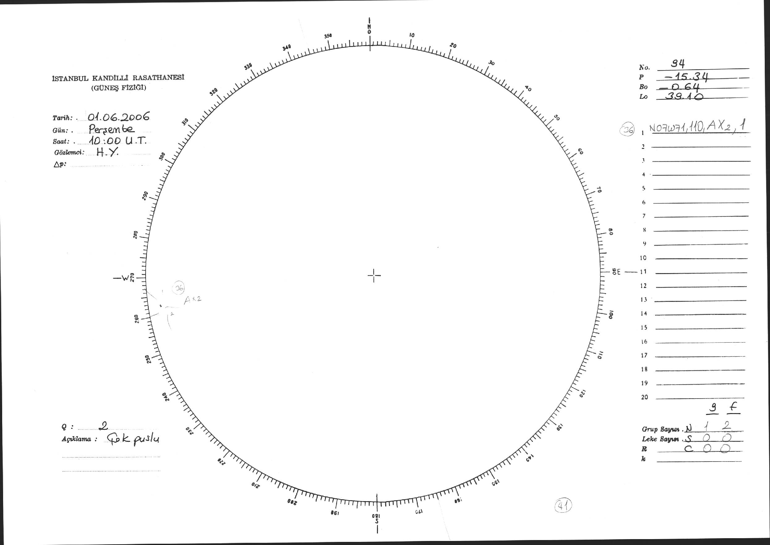Güneş Lekesi Çizimi - 01.06.2006