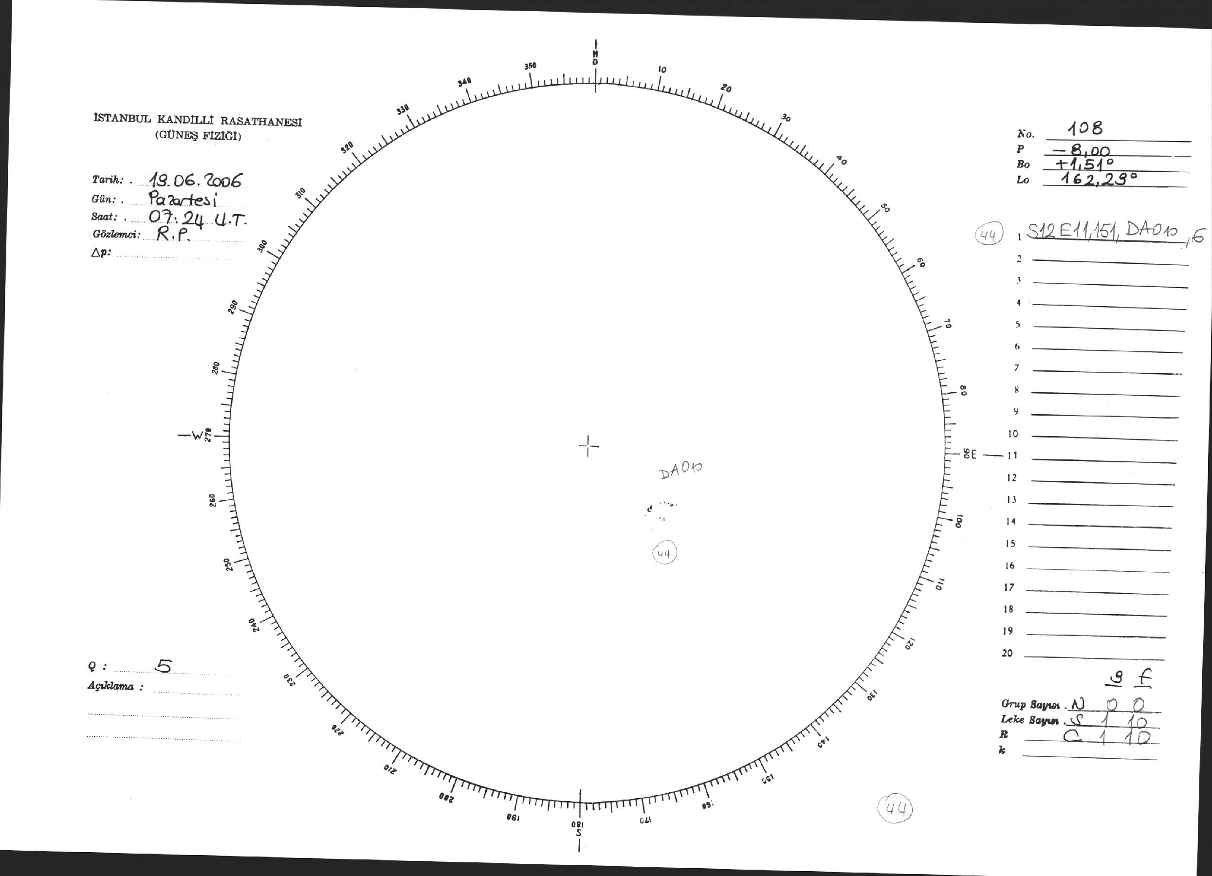 Güneş Lekesi Çizimi - 19.06.2006