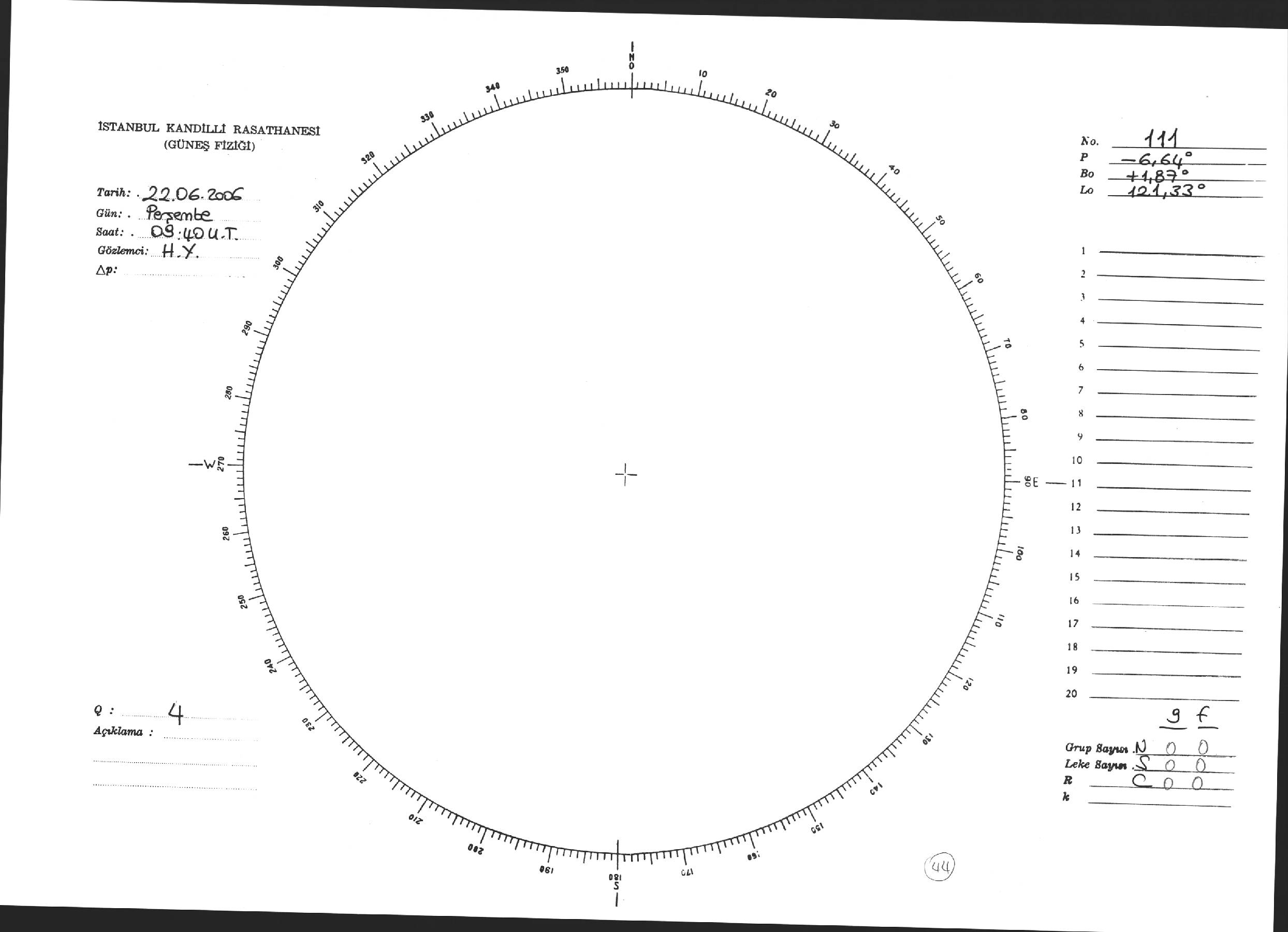 Güneş Lekesi Çizimi - 22.06.2006