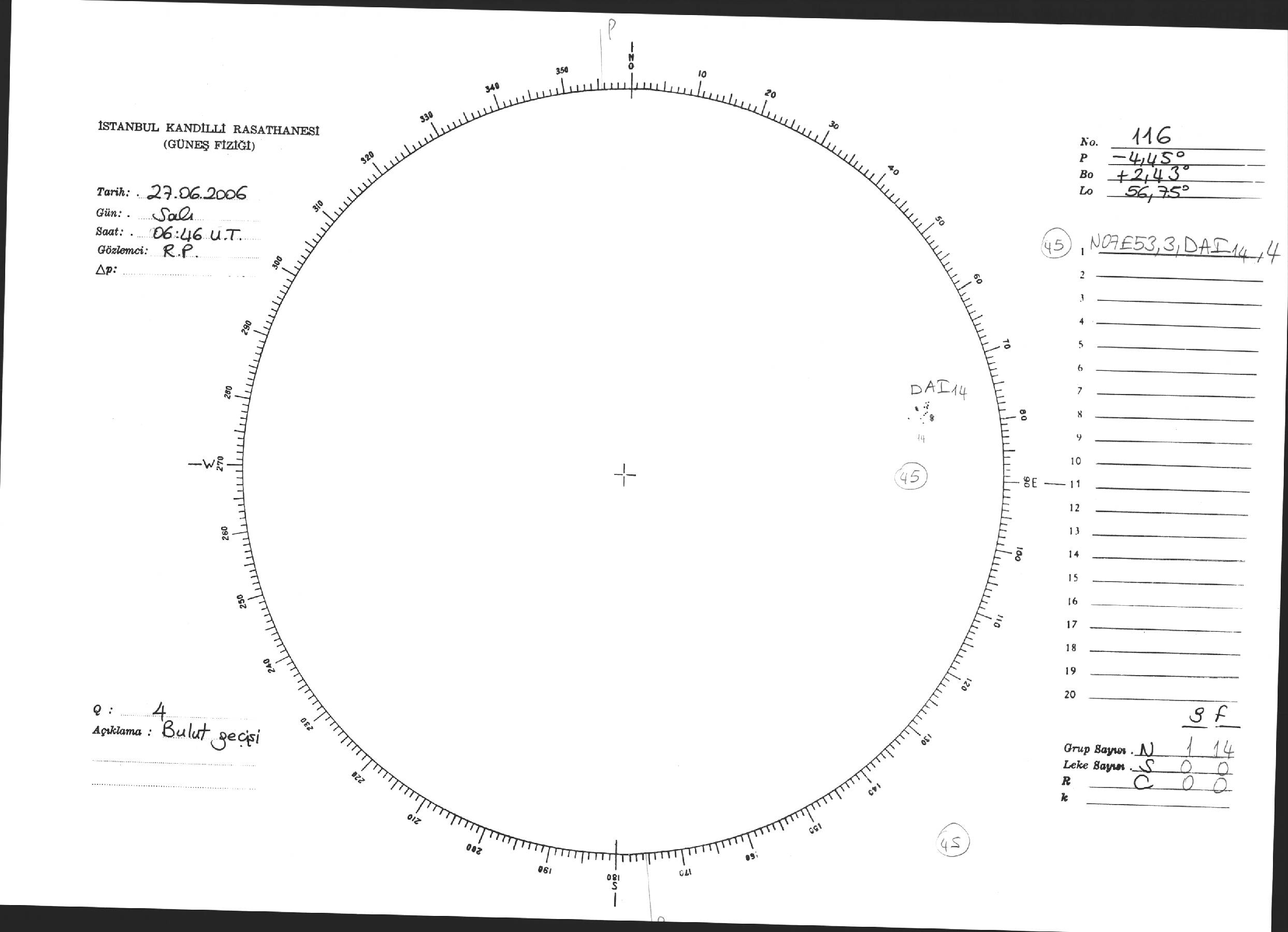 Güneş Lekesi Çizimi - 27.06.2006