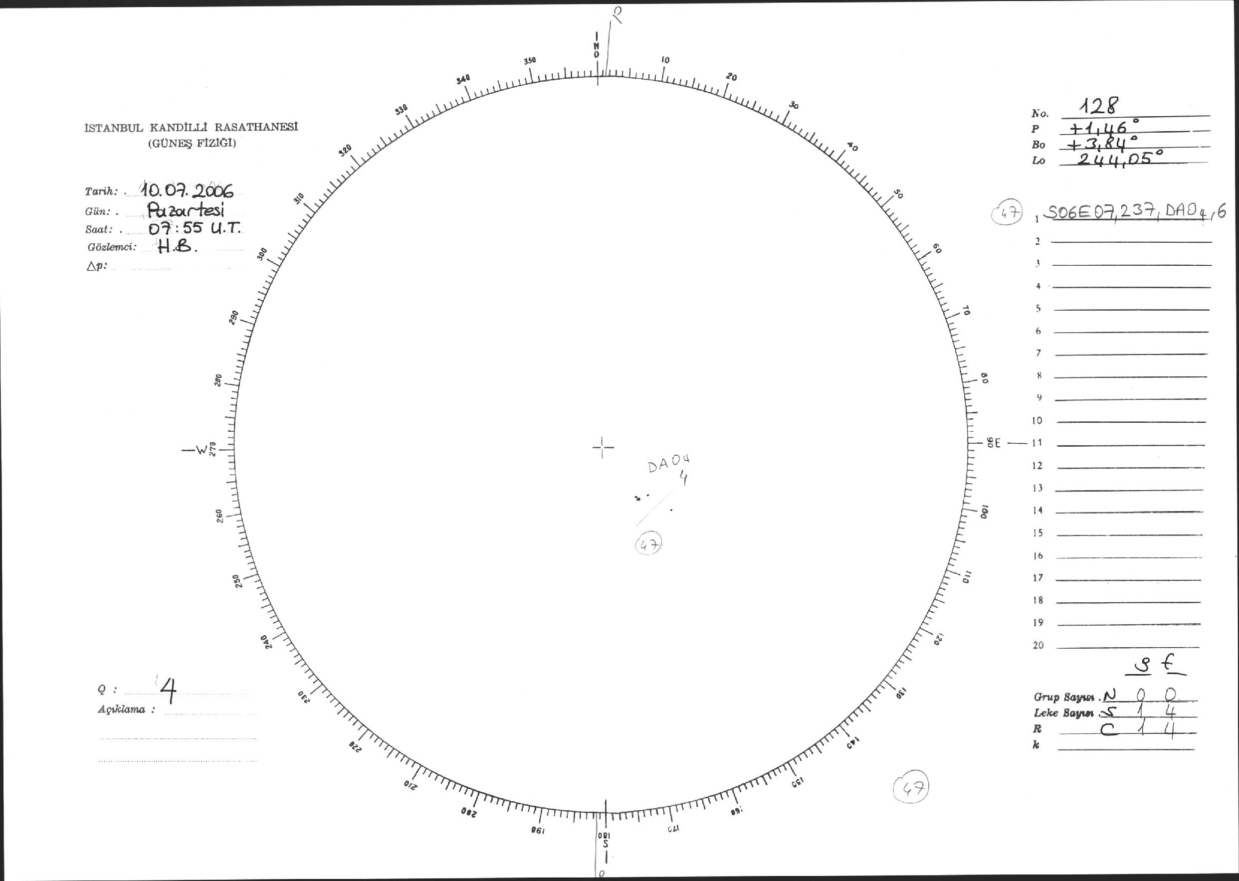 Güneş Lekesi Çizimi - 10.07.2006