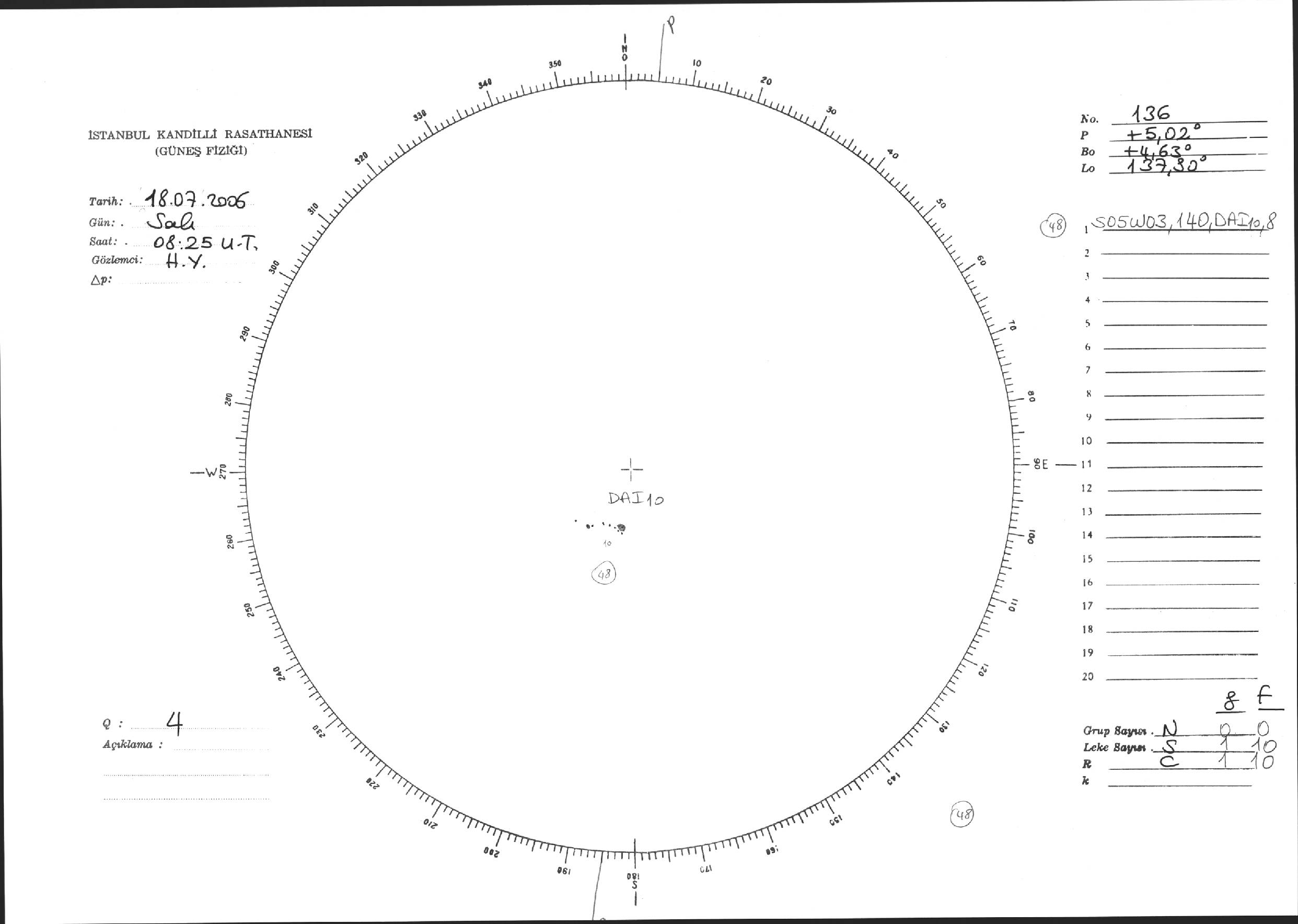 Güneş Lekesi Çizimi - 18.07.2006