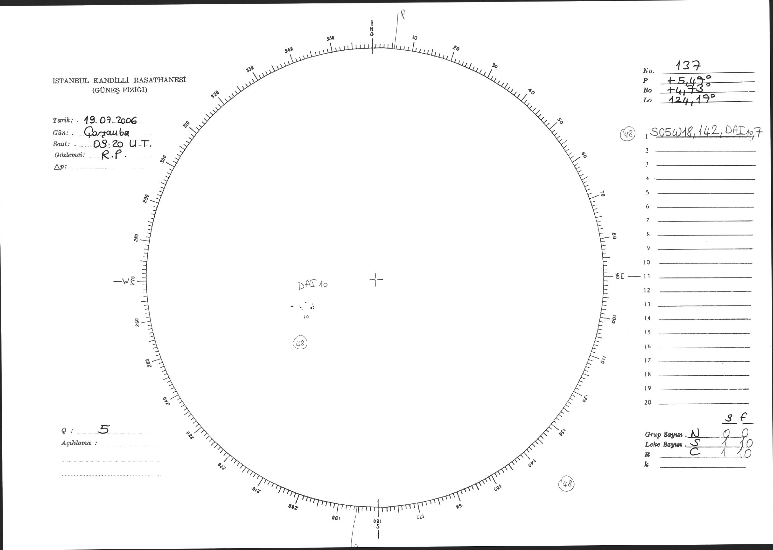 Güneş Lekesi Çizimi - 19.07.2006