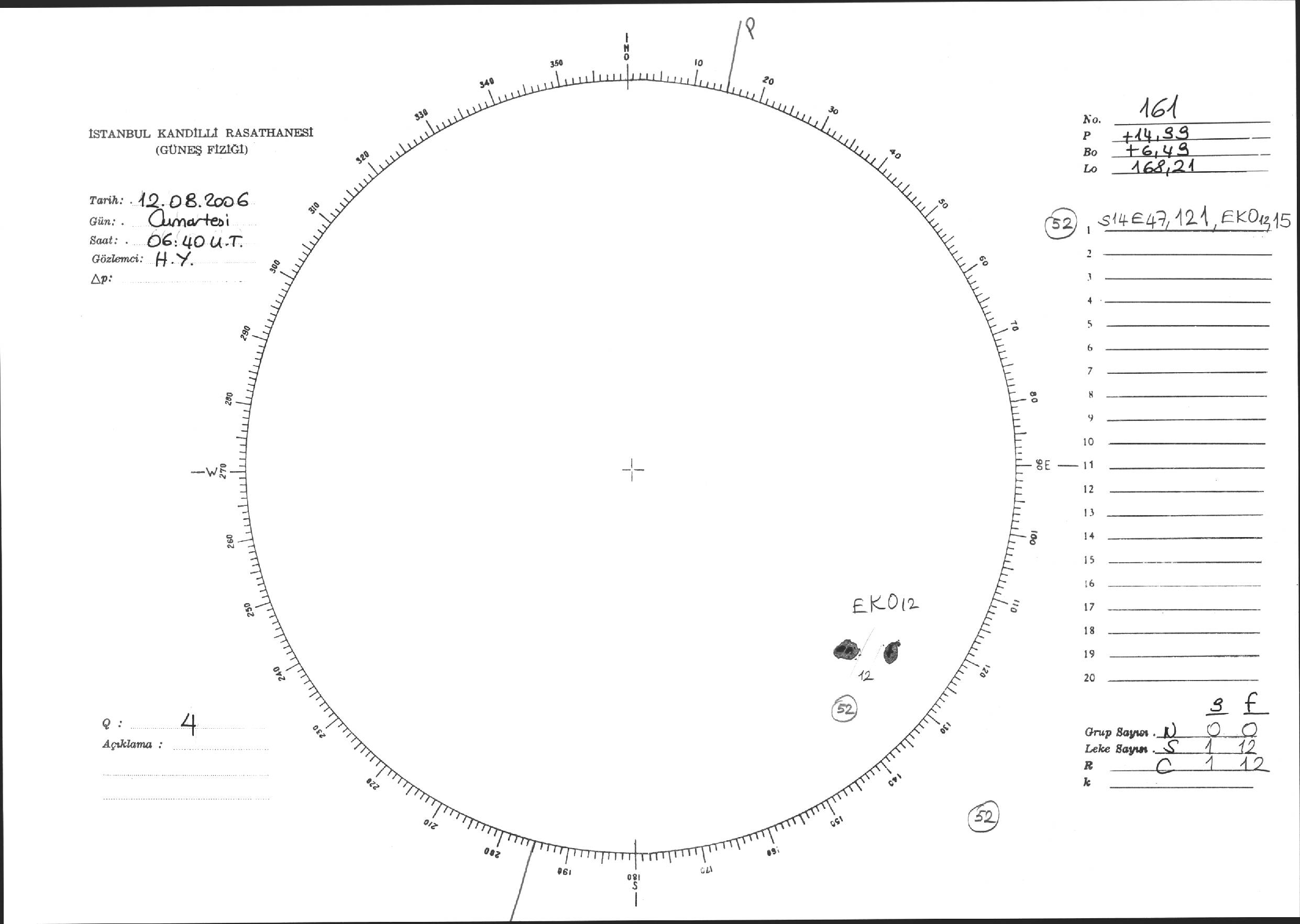 Güneş Lekesi Çizimi - 12.08.2006