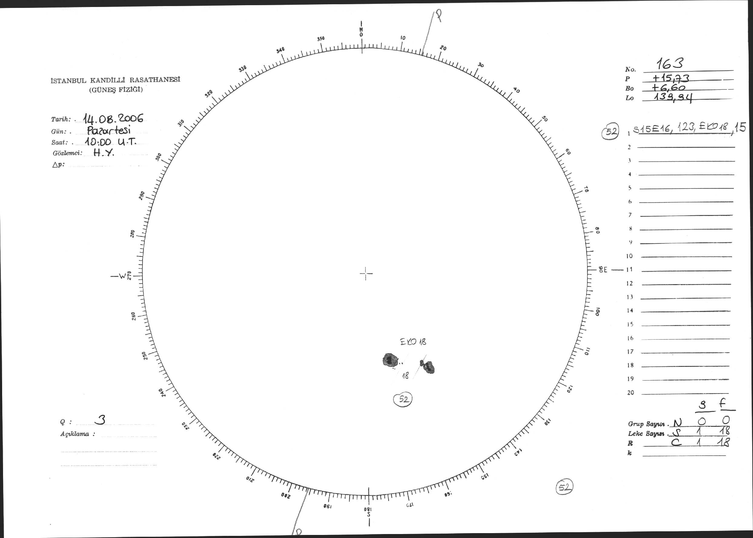 Güneş Lekesi Çizimi - 14.08.2006