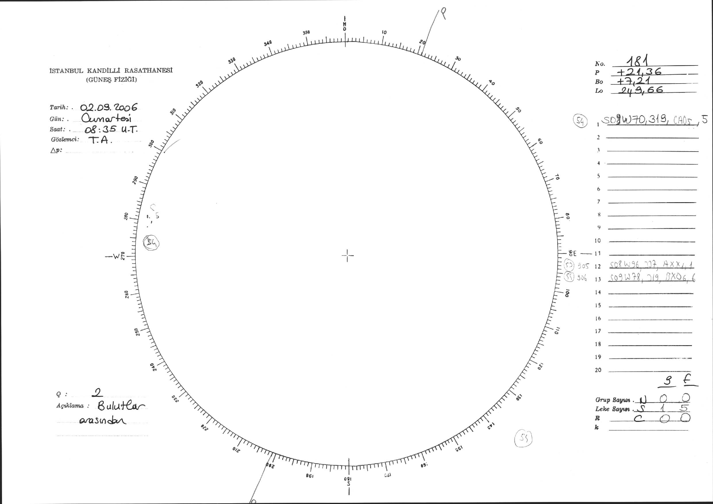 Güneş Lekesi Çizimi - 02.09.2006