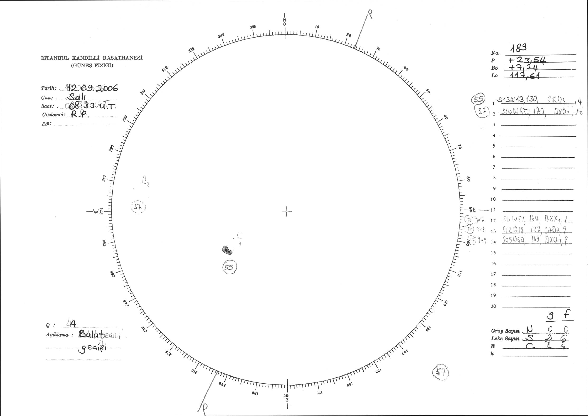 Güneş Lekesi Çizimi - 12.09.2006