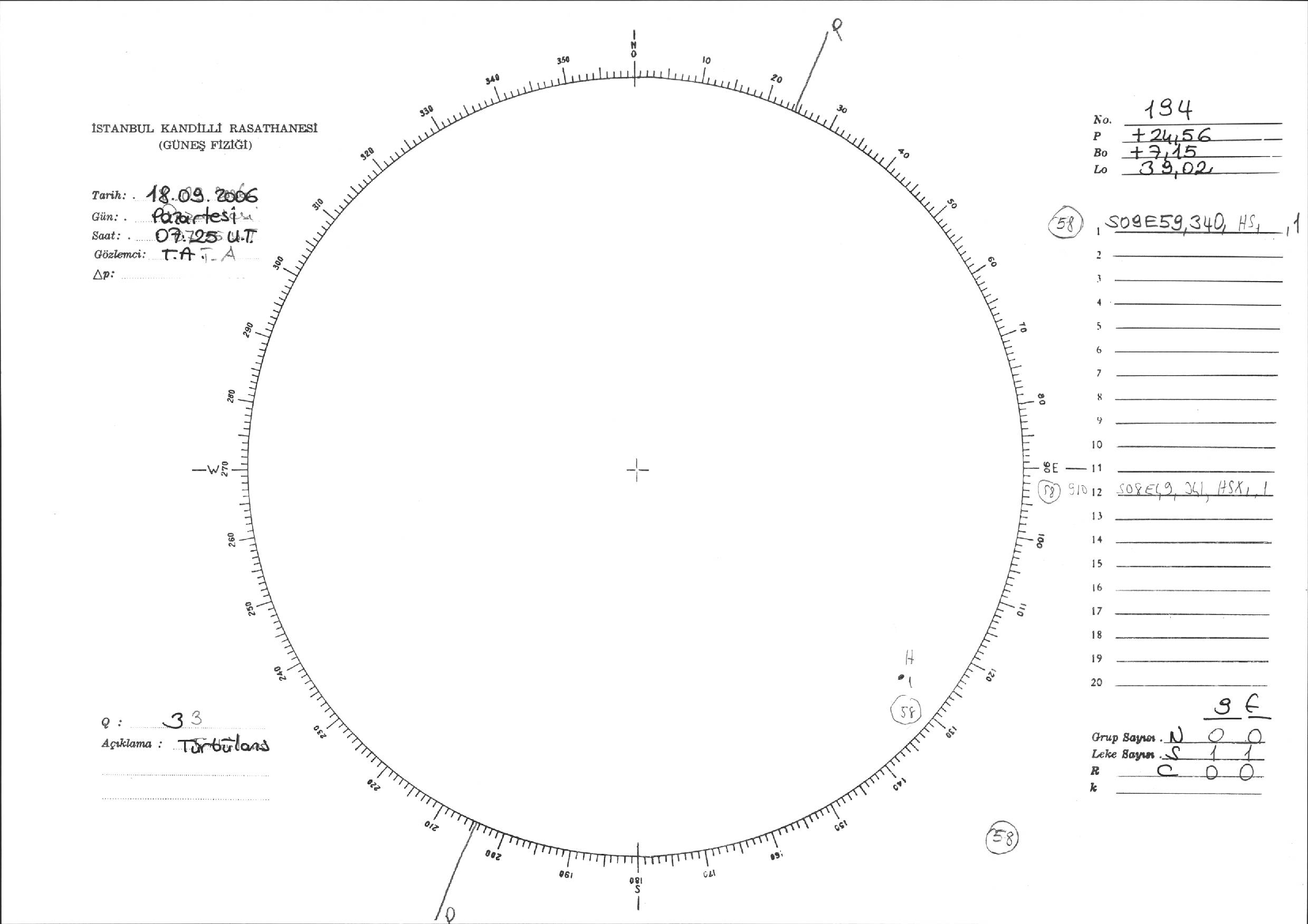 Güneş Lekesi Çizimi - 18.09.2006
