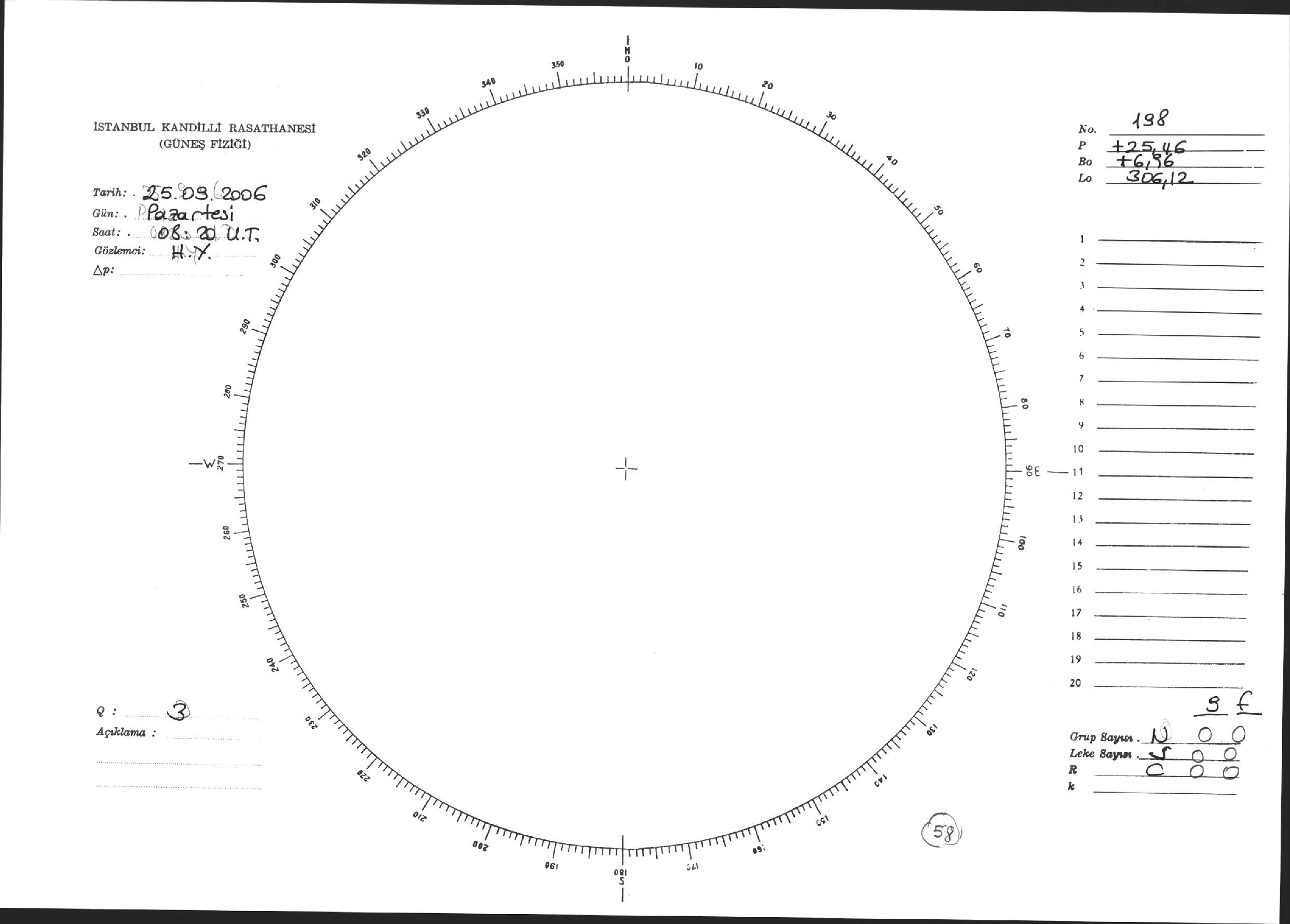Güneş Lekesi Çizimi - 25.09.2006