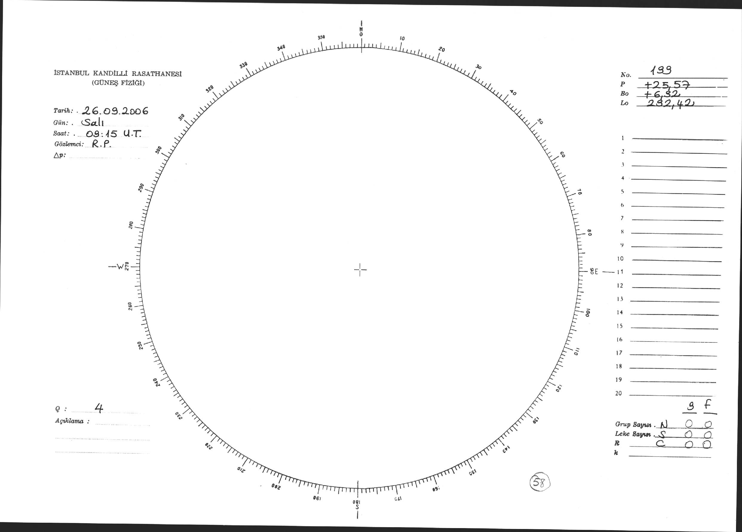 Güneş Lekesi Çizimi - 26.09.2006