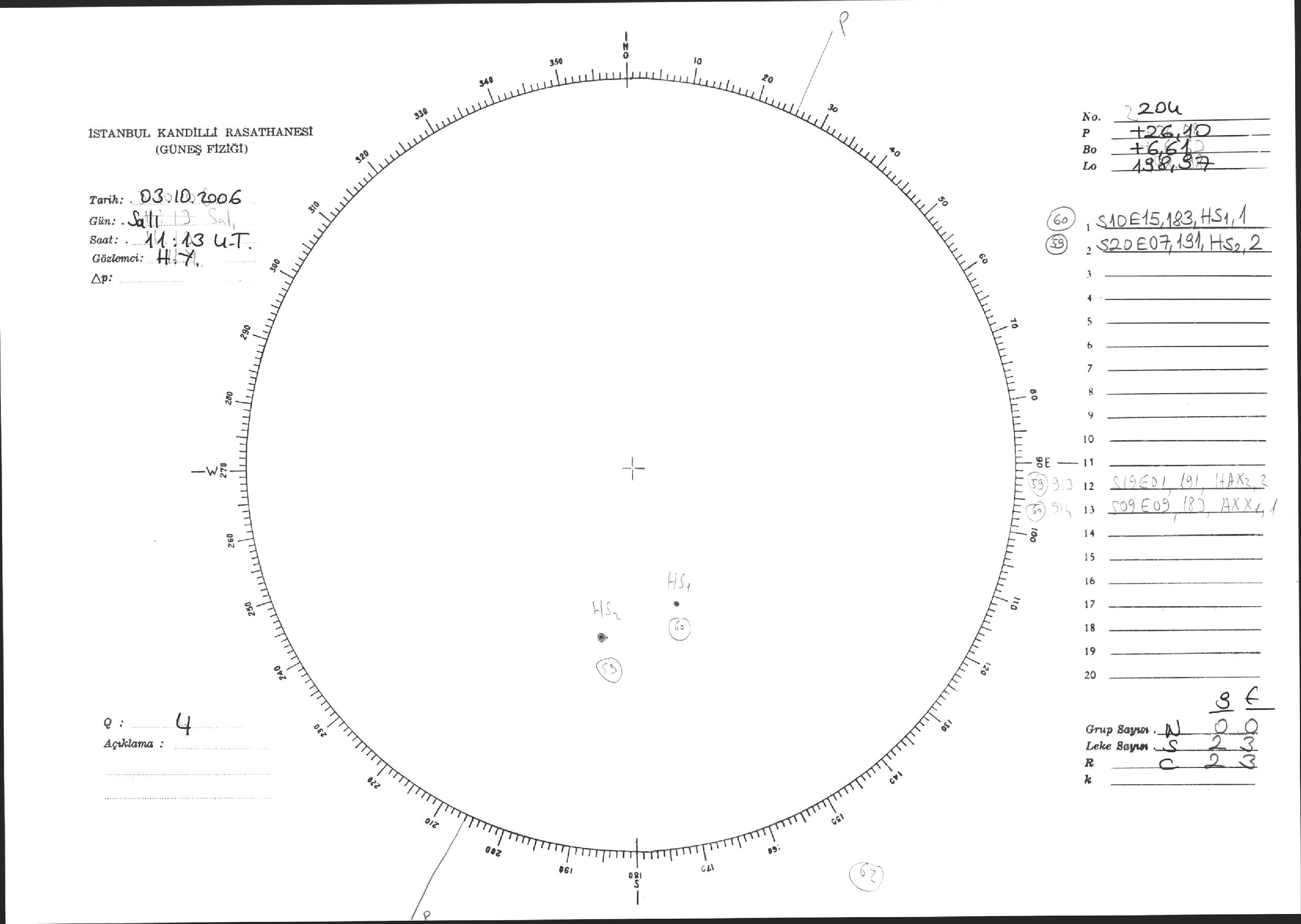 Güneş Lekesi Çizimi - 03.10.2006