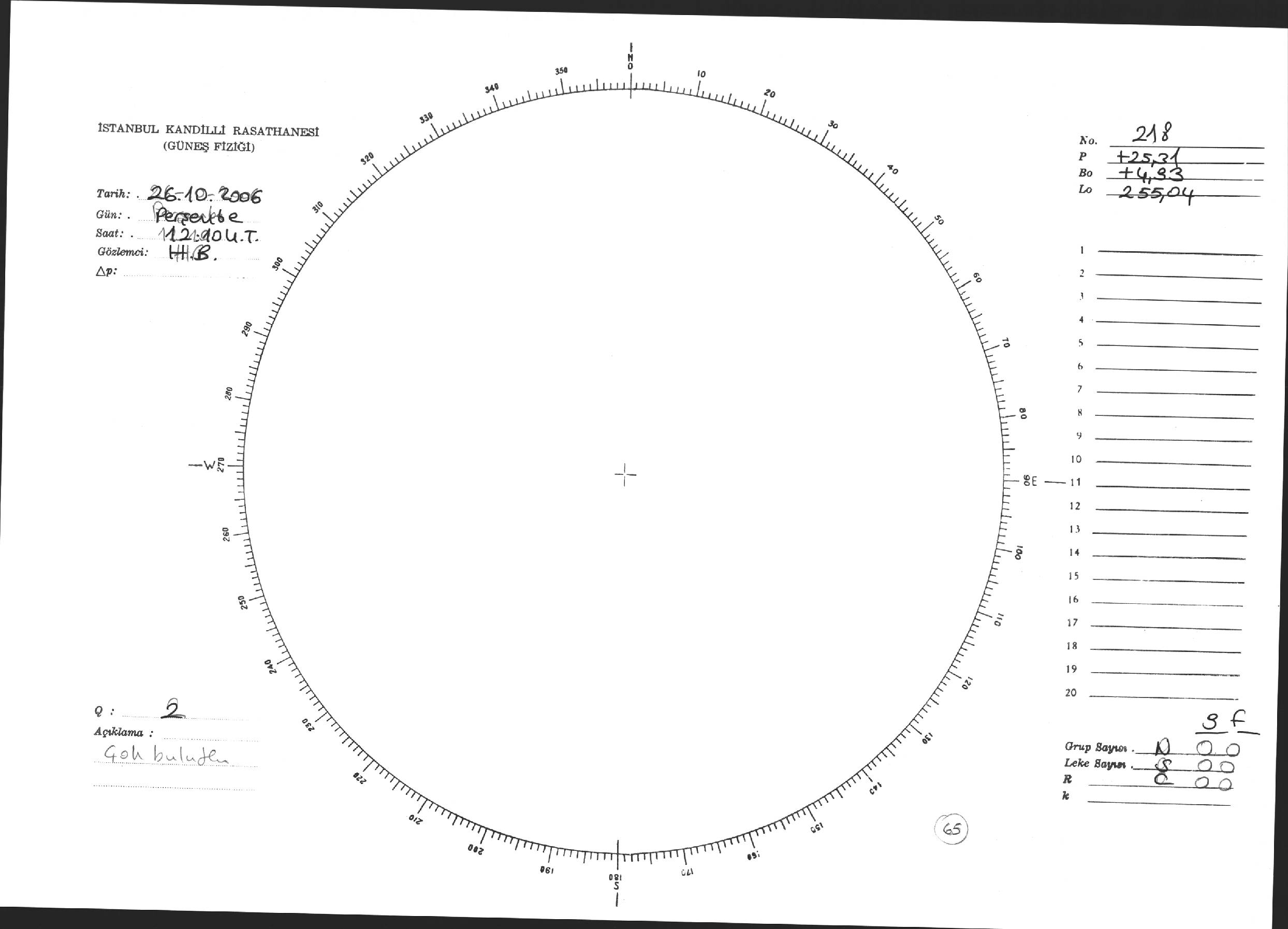 Güneş Lekesi Çizimi - 26.10.2006