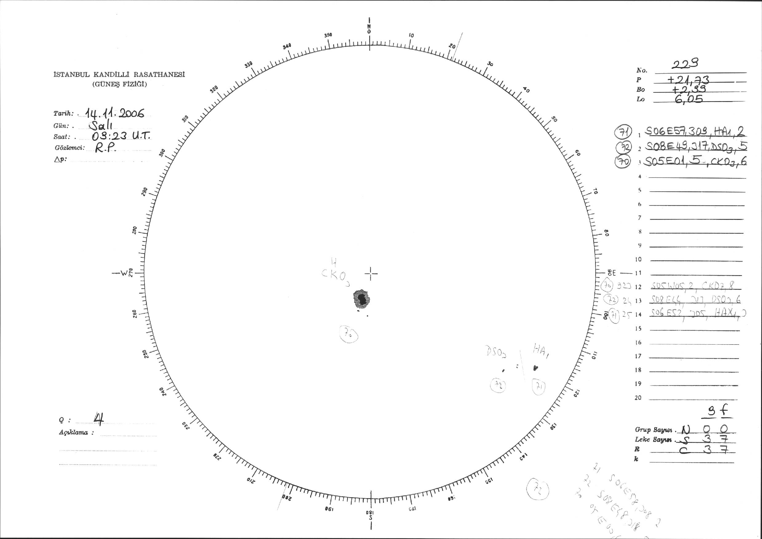 Güneş Lekesi Çizimi - 14.11.2006