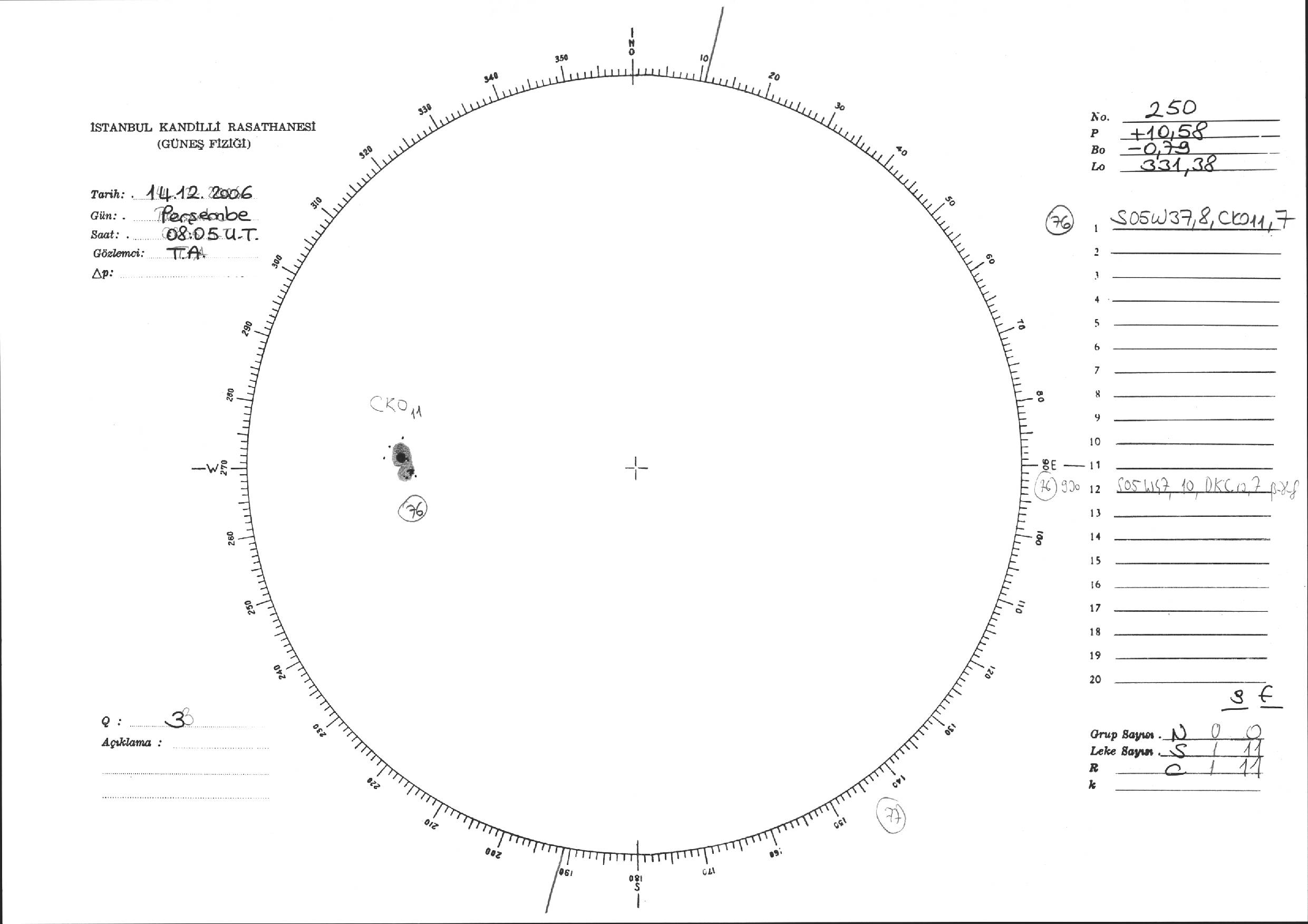 Güneş Lekesi Çizimi - 14.12.2006