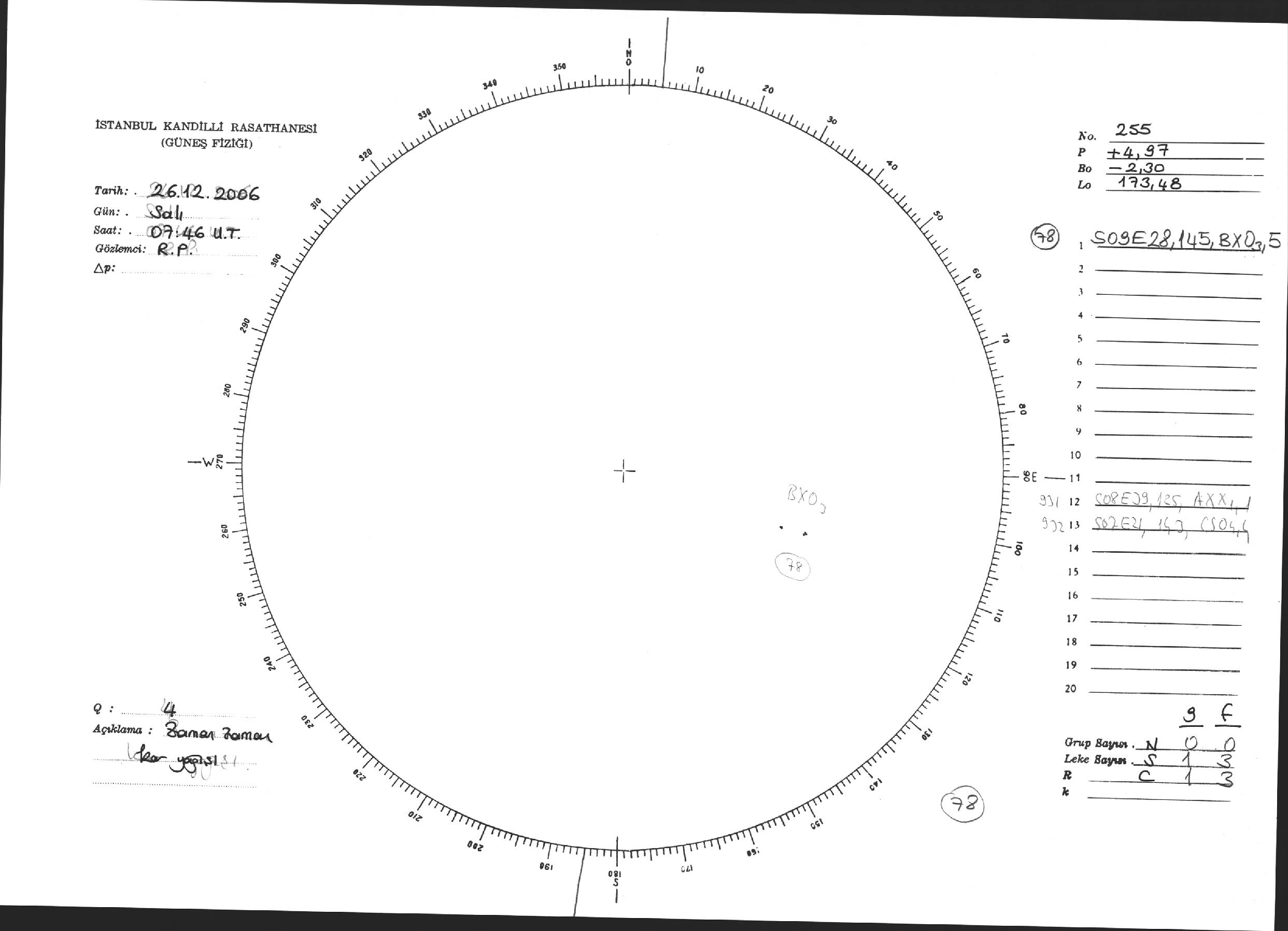 Güneş Lekesi Çizimi - 26.12.2006