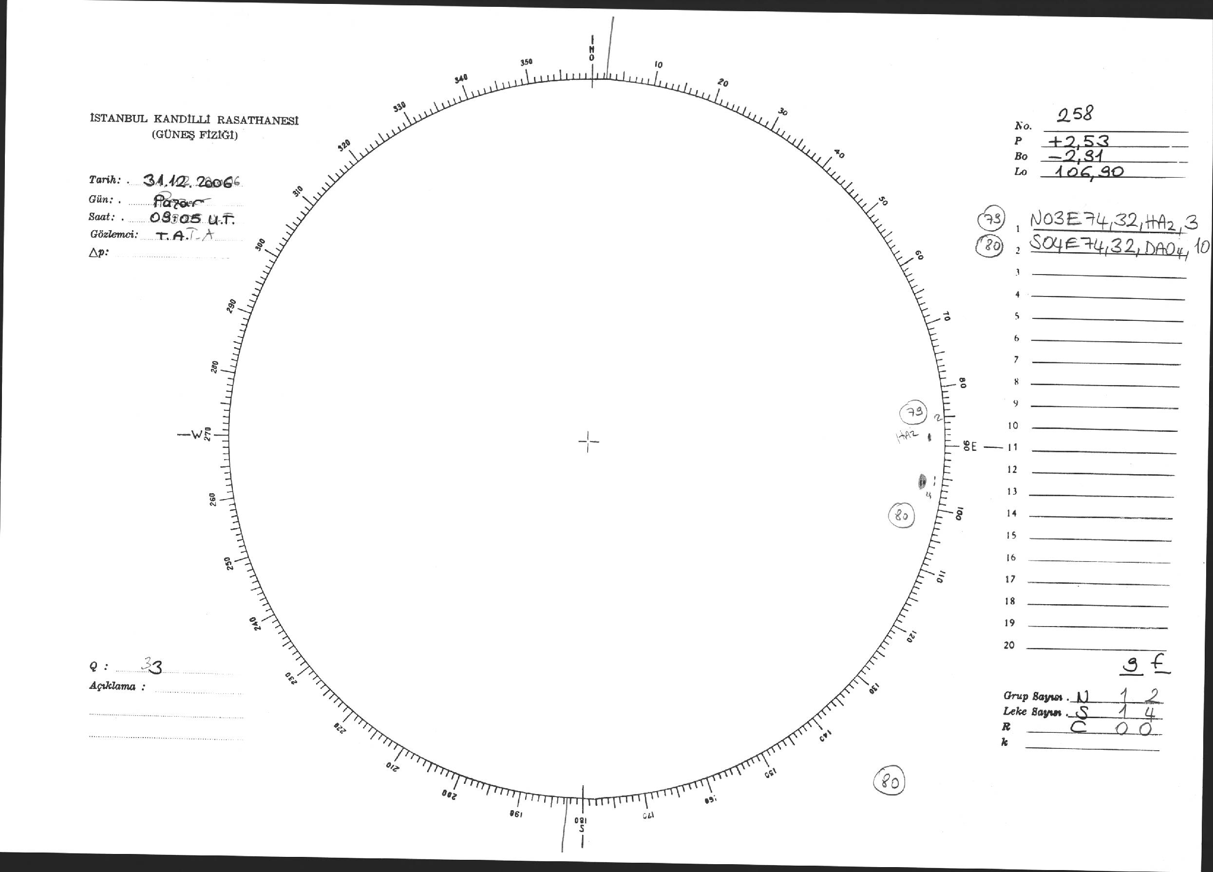 Güneş Lekesi Çizimi - 31.12.2006