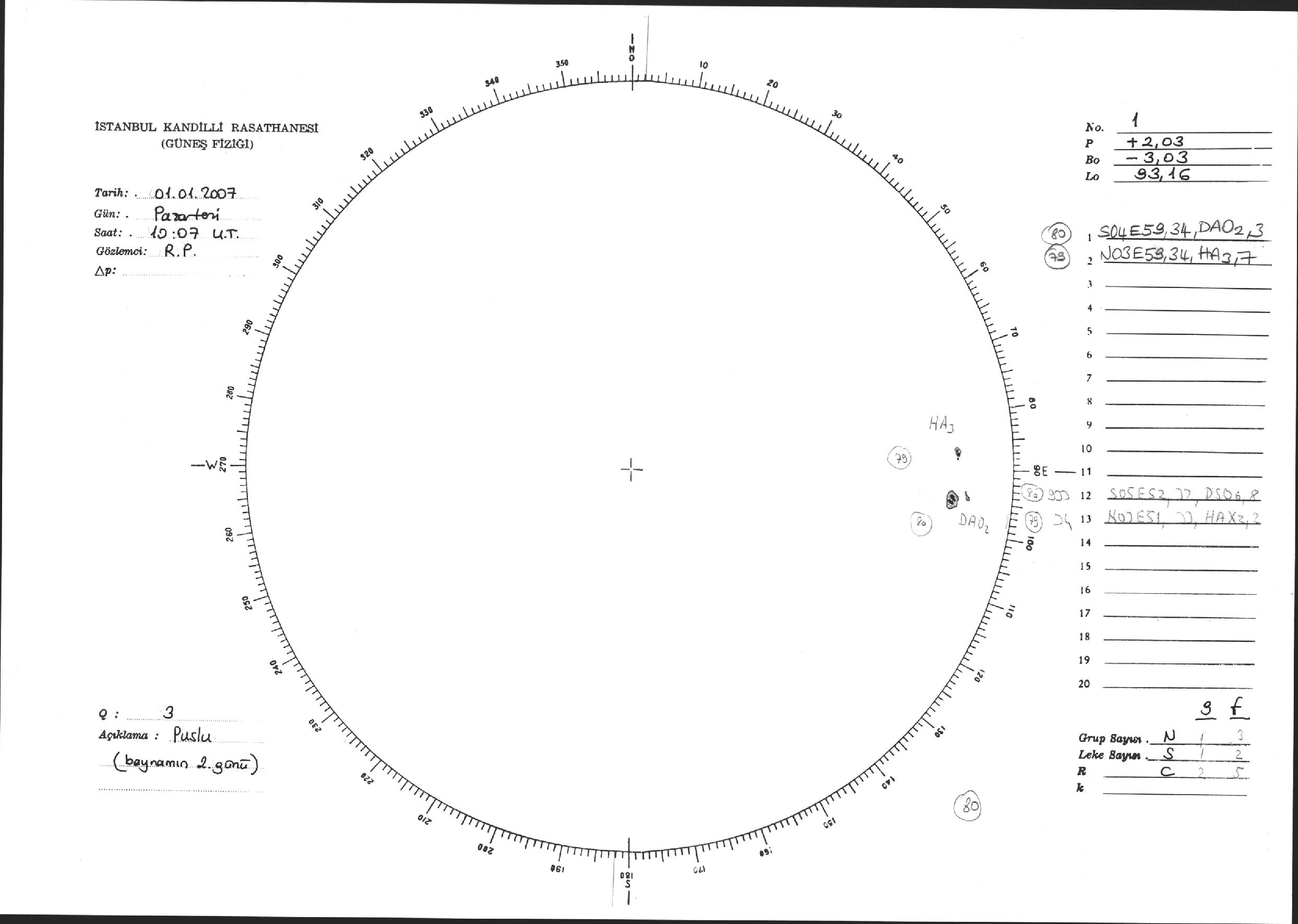 Güneş Lekesi Çizimi - 01.01.2007
