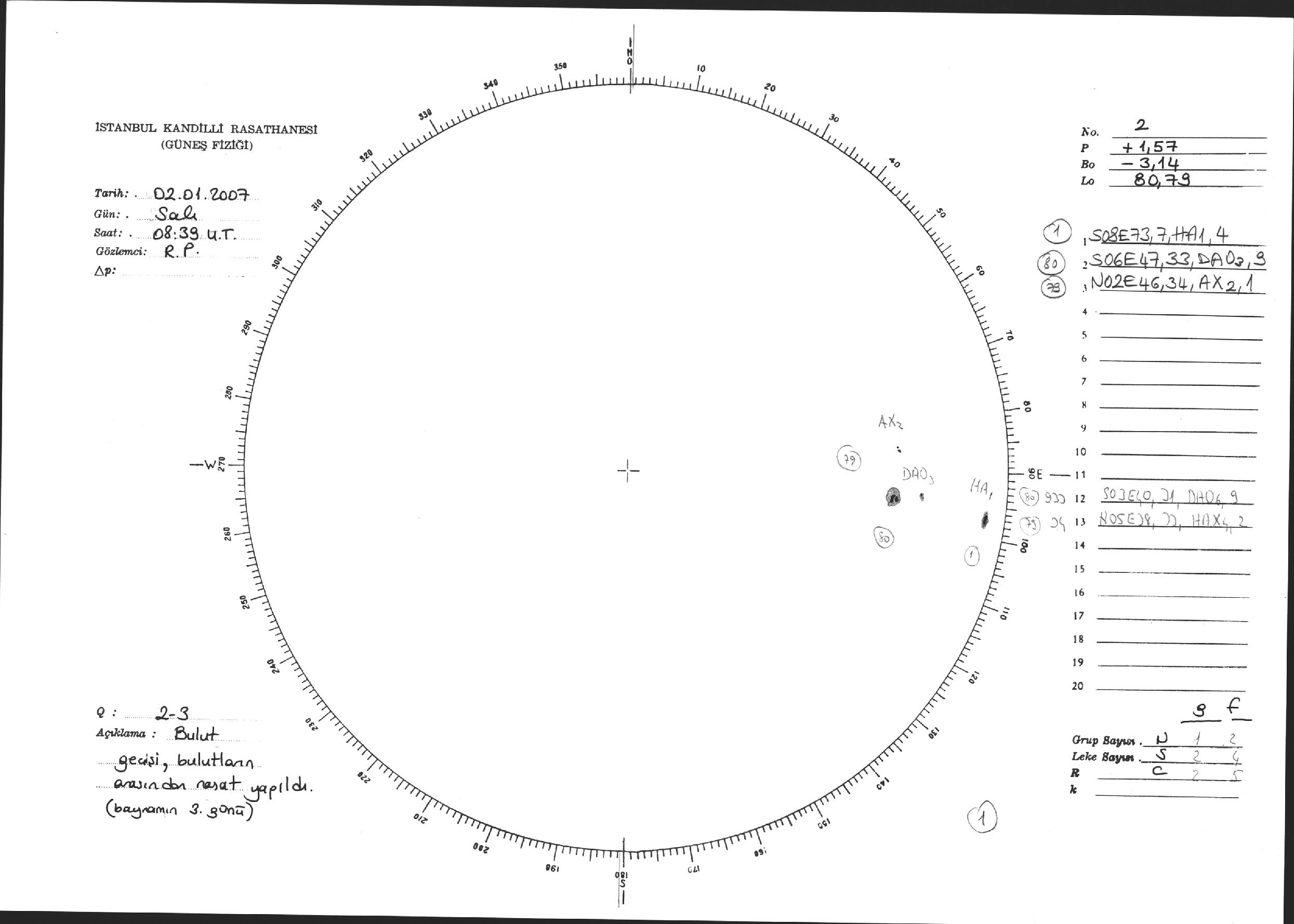 Güneş Lekesi Çizimi - 02.01.2007