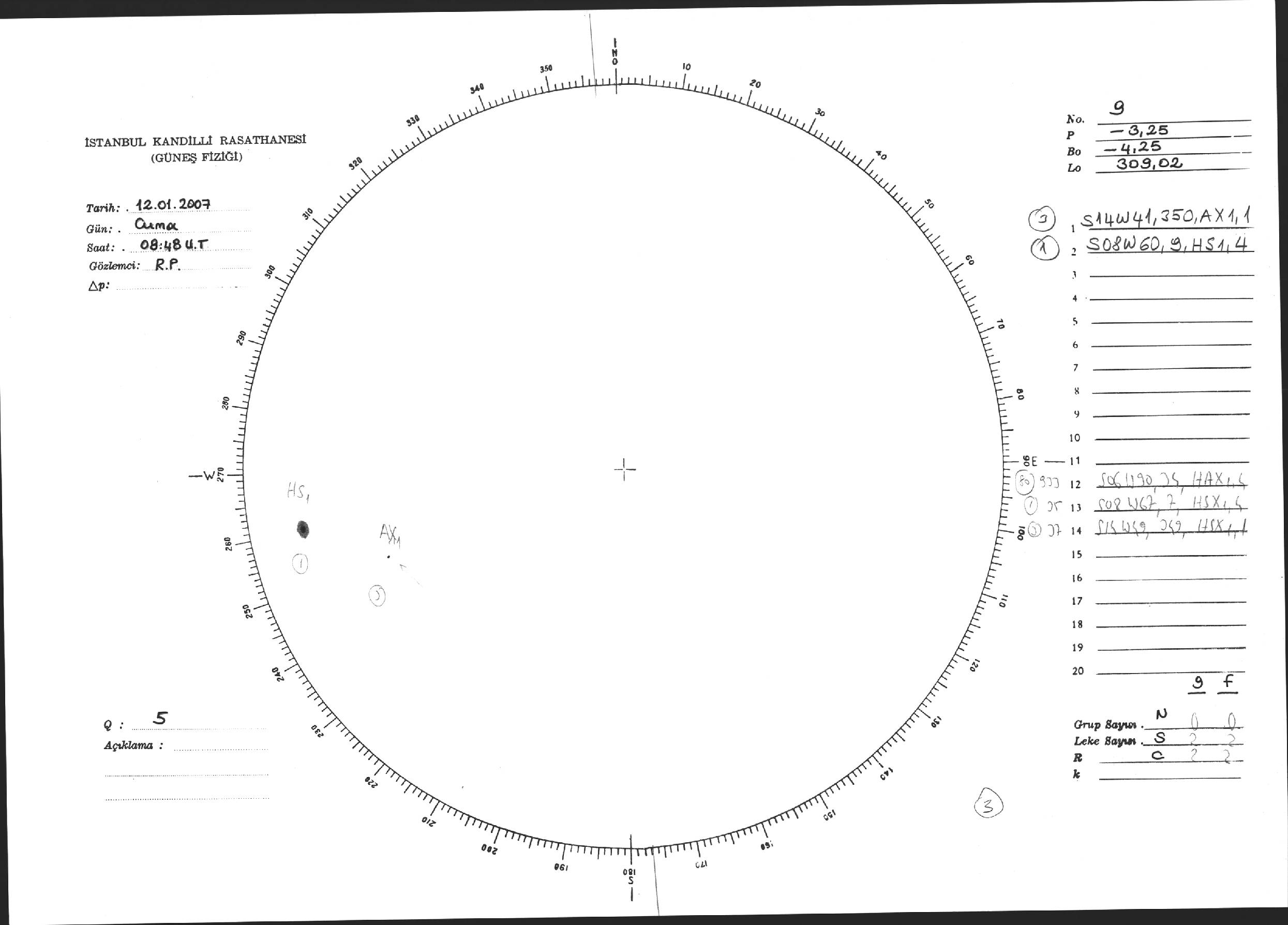 Güneş Lekesi Çizimi - 12.01.2007