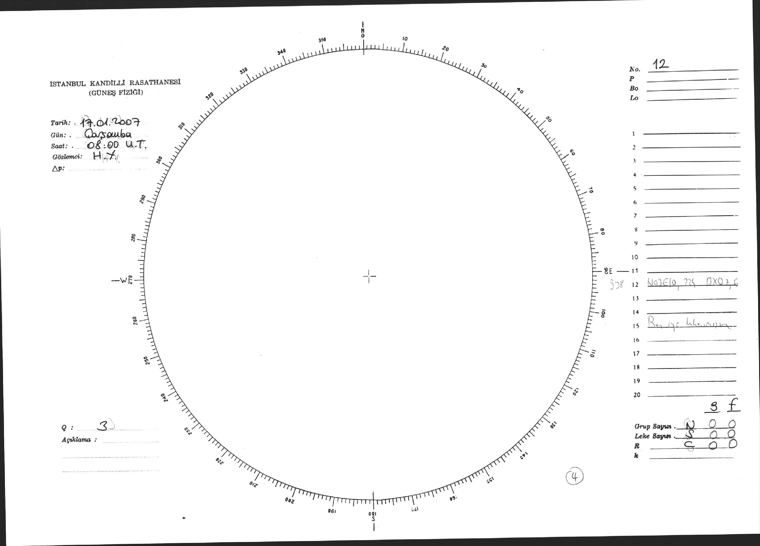 Güneş Lekesi Çizimi - 17.01.2007