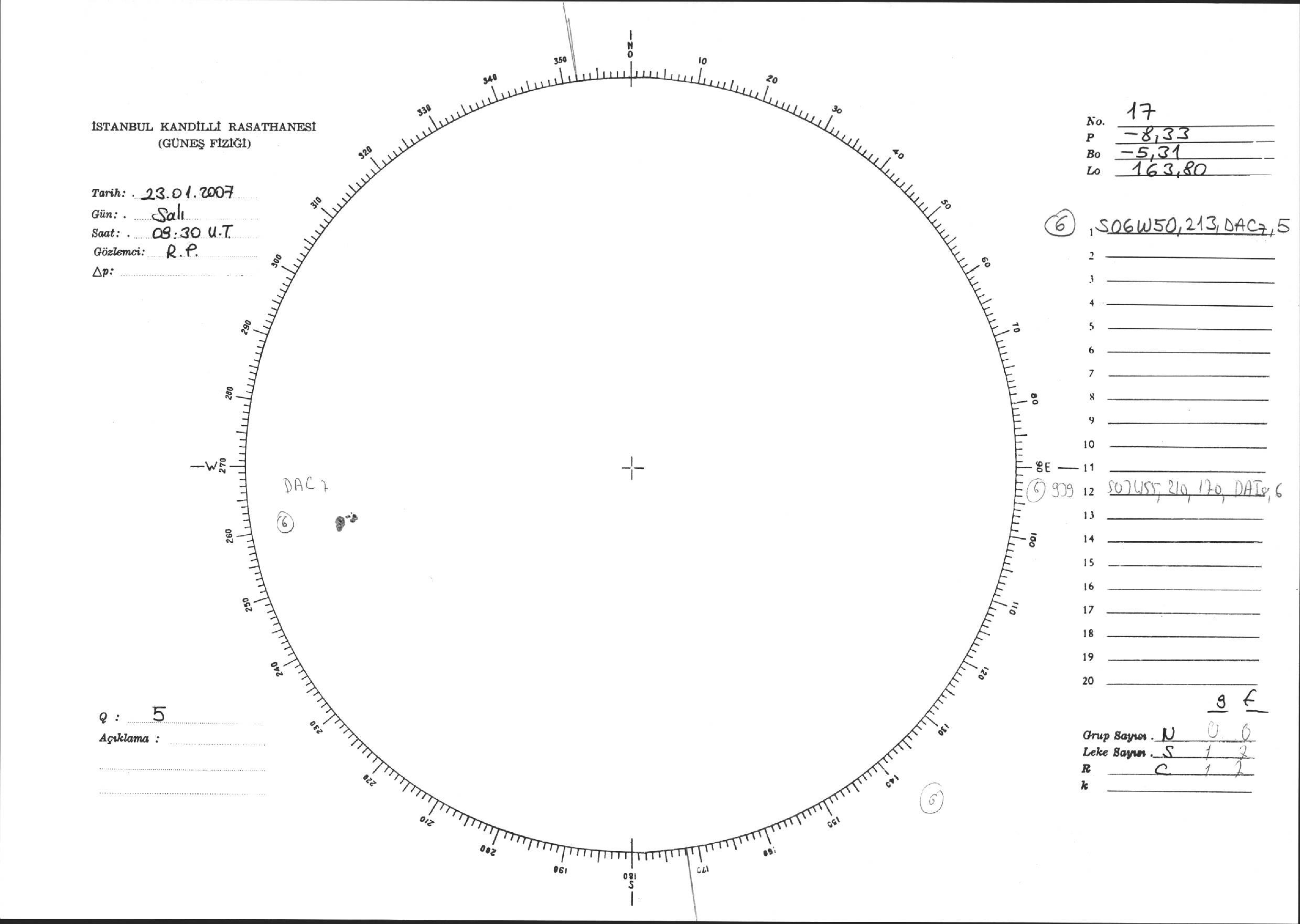 Güneş Lekesi Çizimi - 23.01.2007