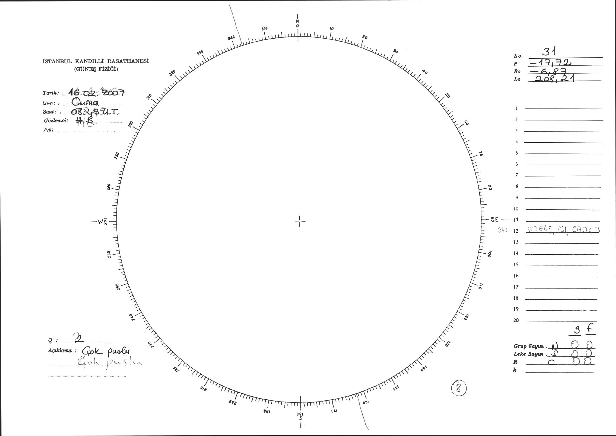 Güneş Lekesi Çizimi - 16.02.2007