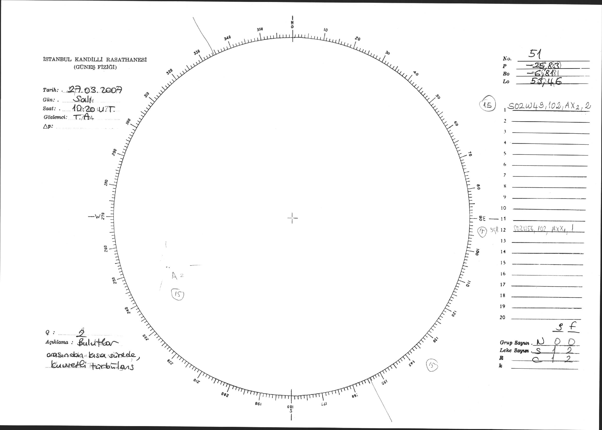 Güneş Lekesi Çizimi - 27.03.2007