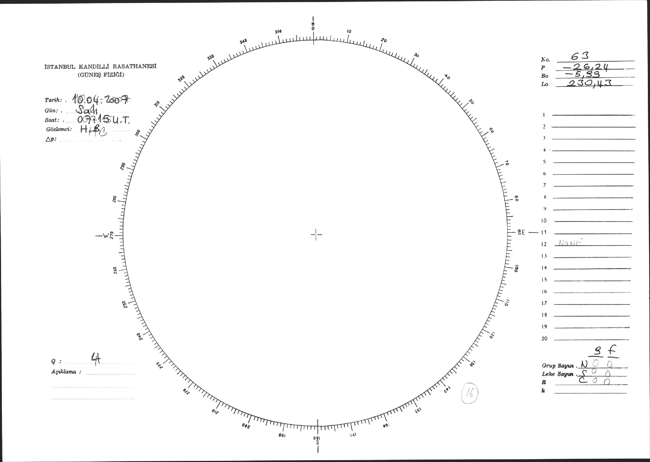 Güneş Lekesi Çizimi - 10.04.2007
