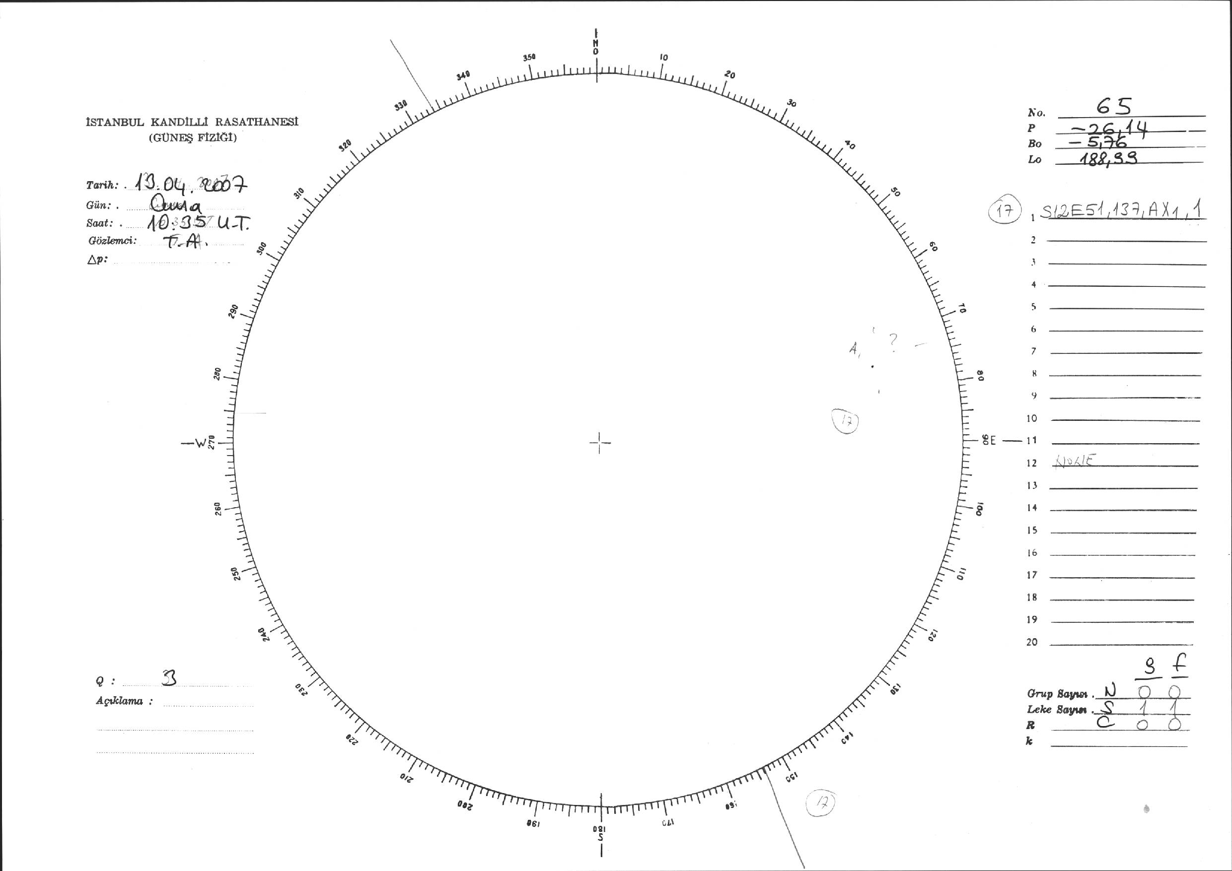Güneş Lekesi Çizimi - 13.04.2007