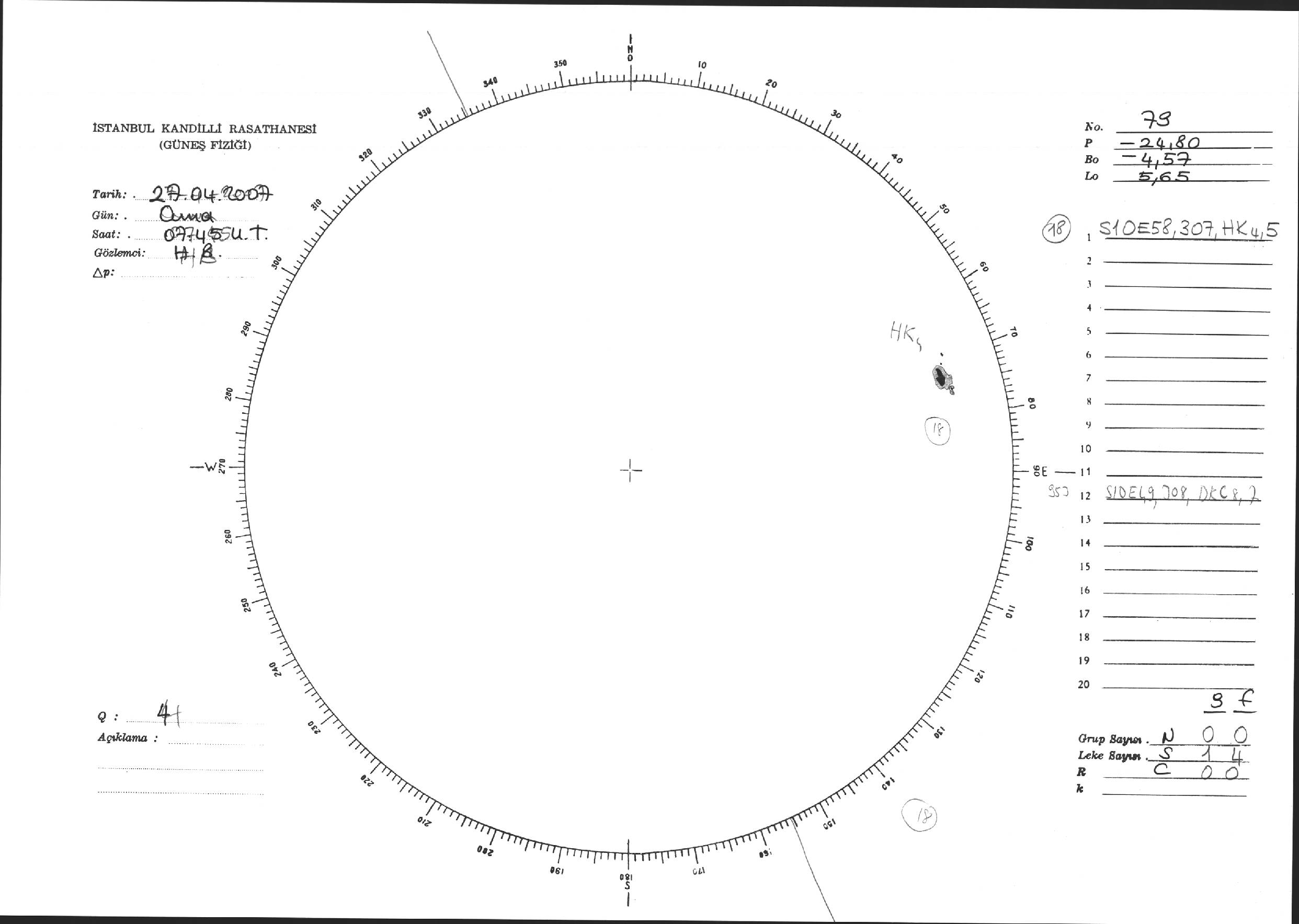 Güneş Lekesi Çizimi - 27.04.2007