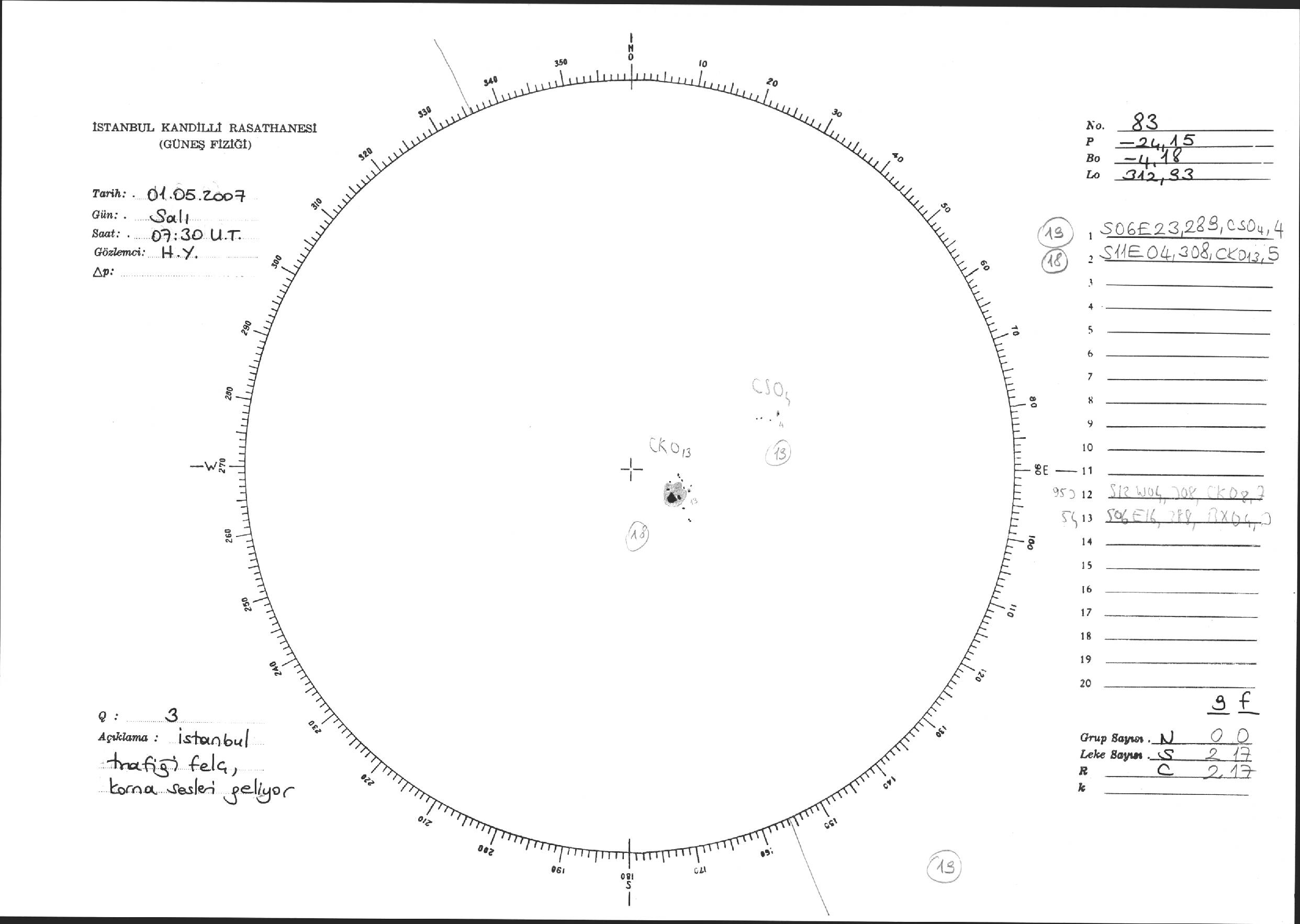 Güneş Lekesi Çizimi - 01.05.2007