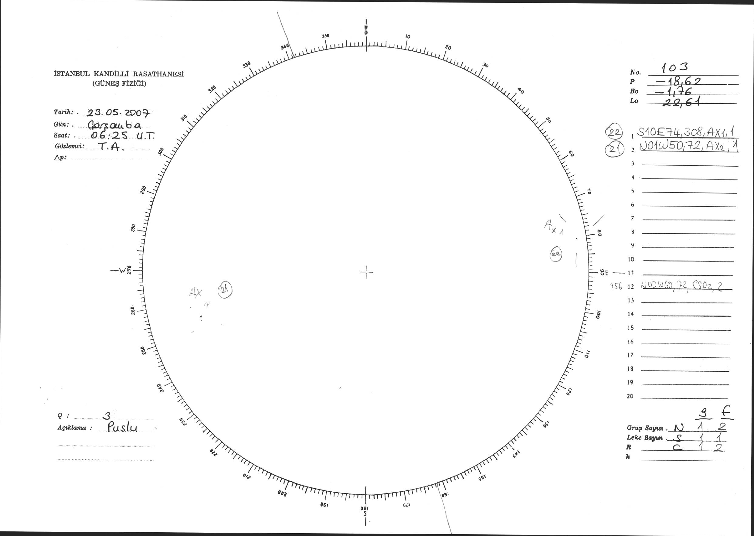 Güneş Lekesi Çizimi - 23.05.2007