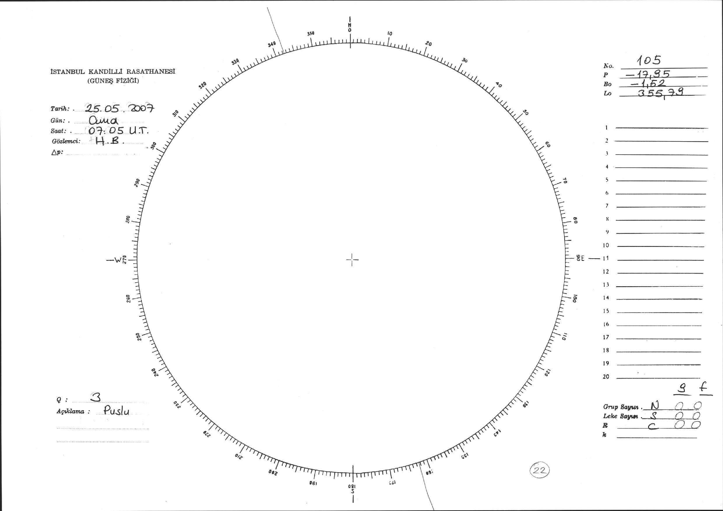 Güneş Lekesi Çizimi - 25.05.2007