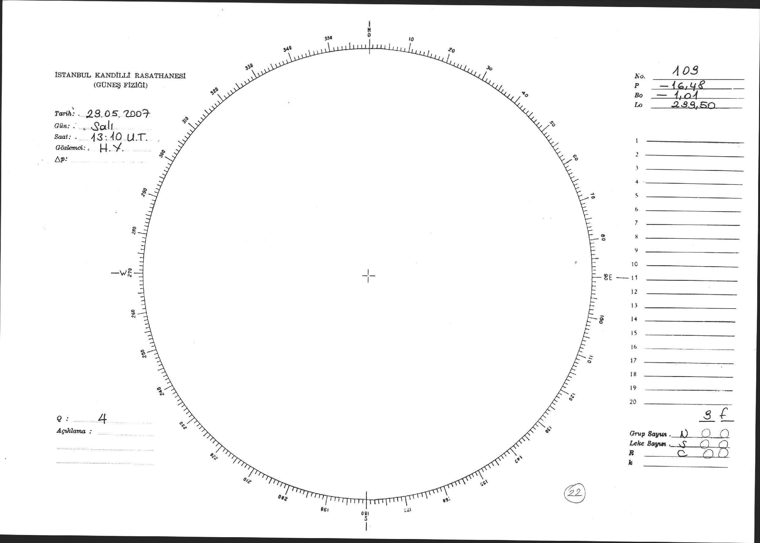 Güneş Lekesi Çizimi - 29.05.2007