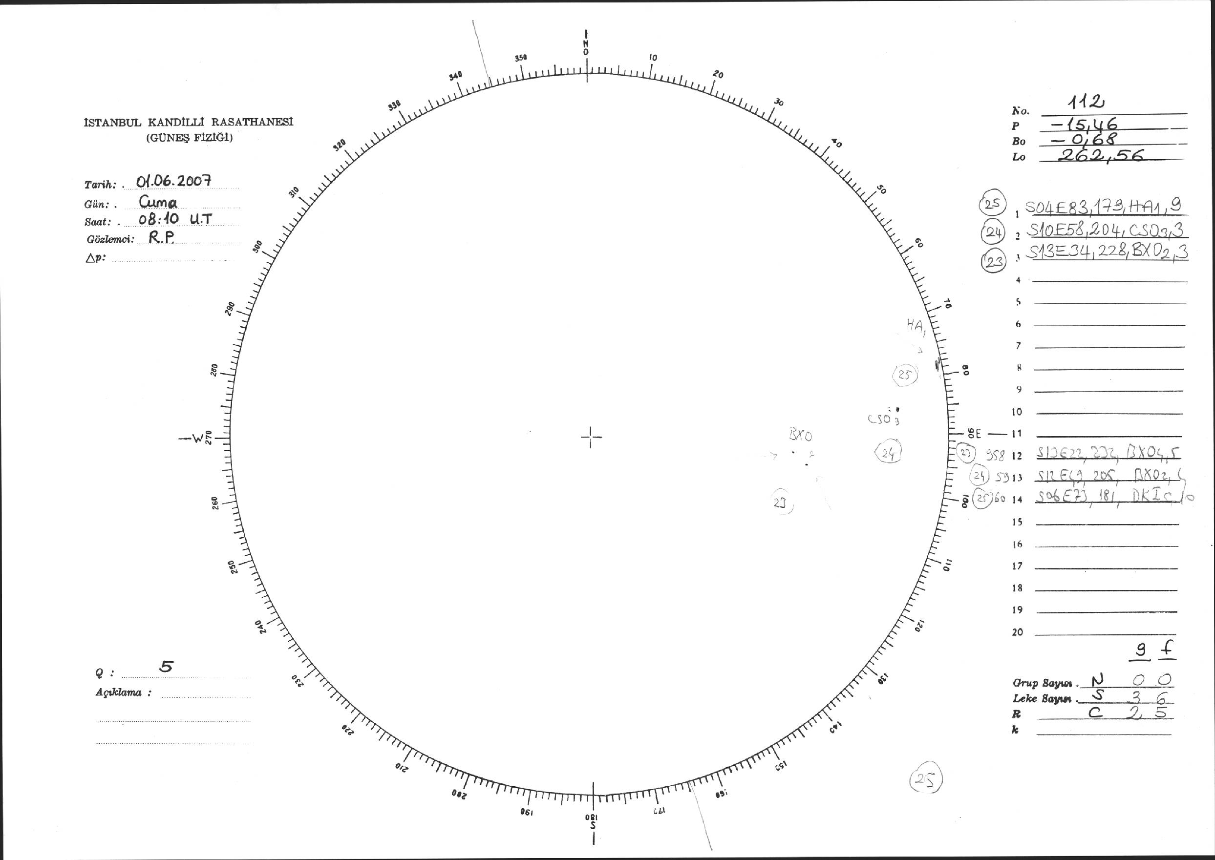 Güneş Lekesi Çizimi - 01.06.2007