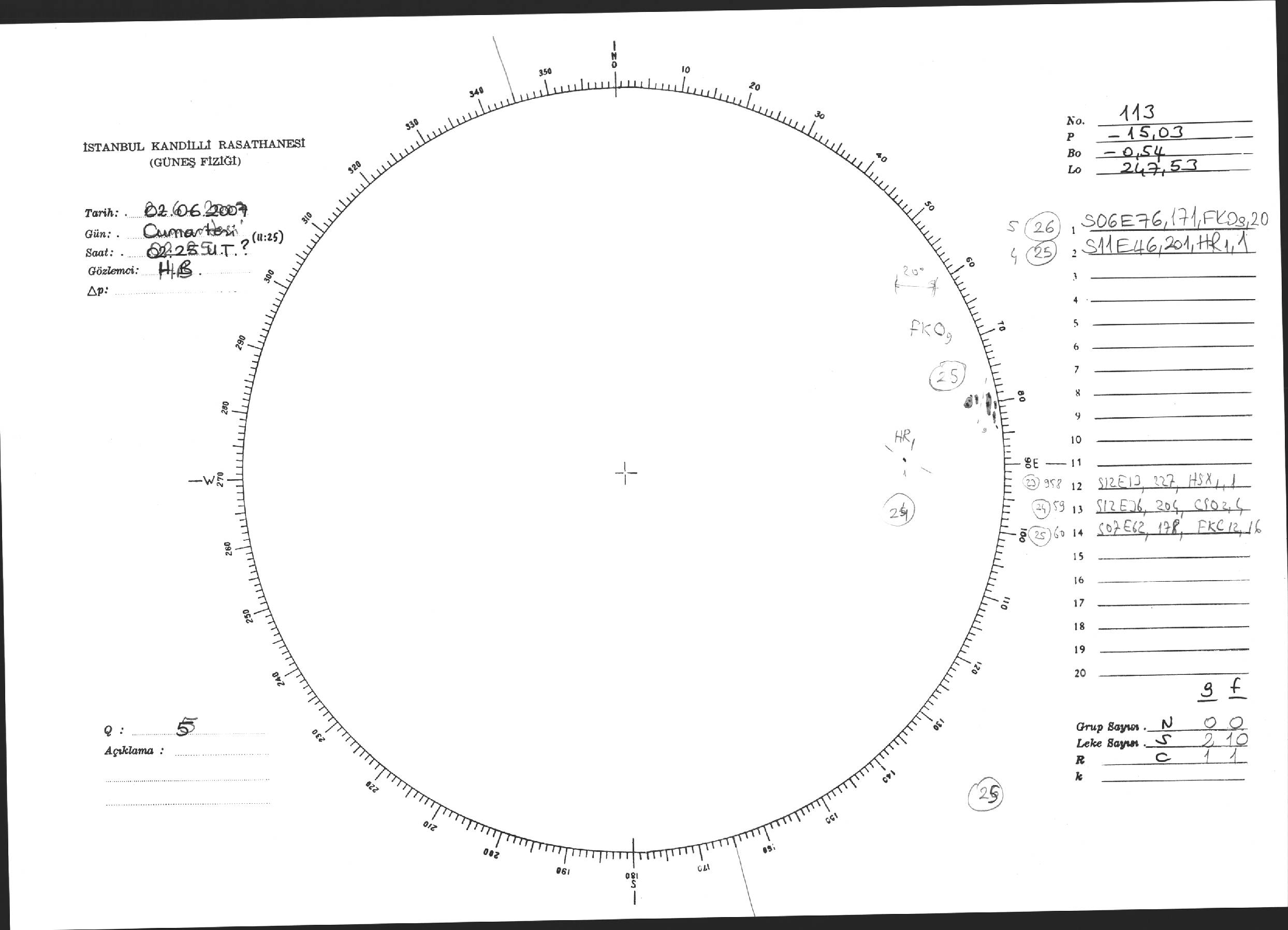 Güneş Lekesi Çizimi - 02.06.2007
