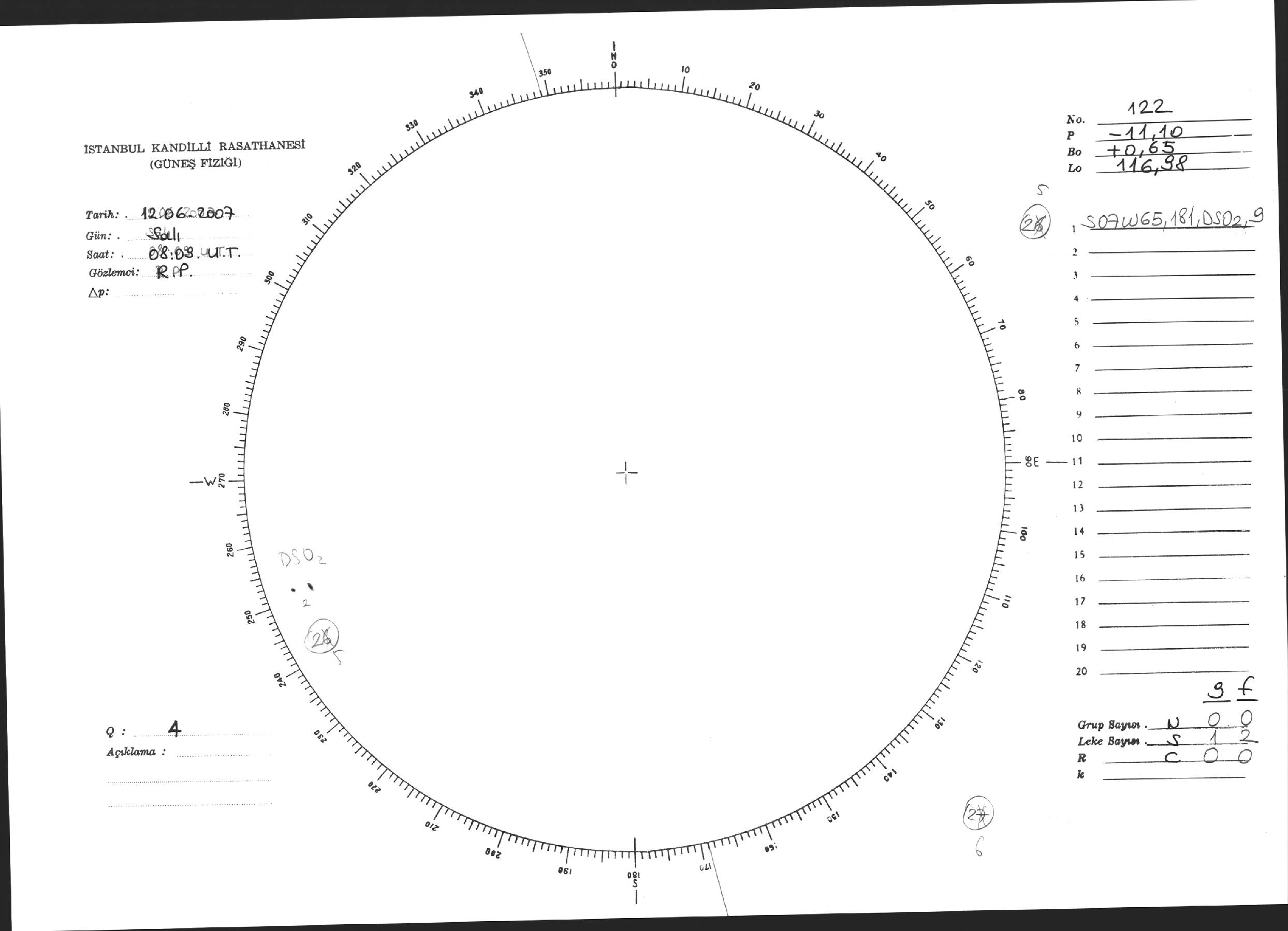 Güneş Lekesi Çizimi - 12.06.2007