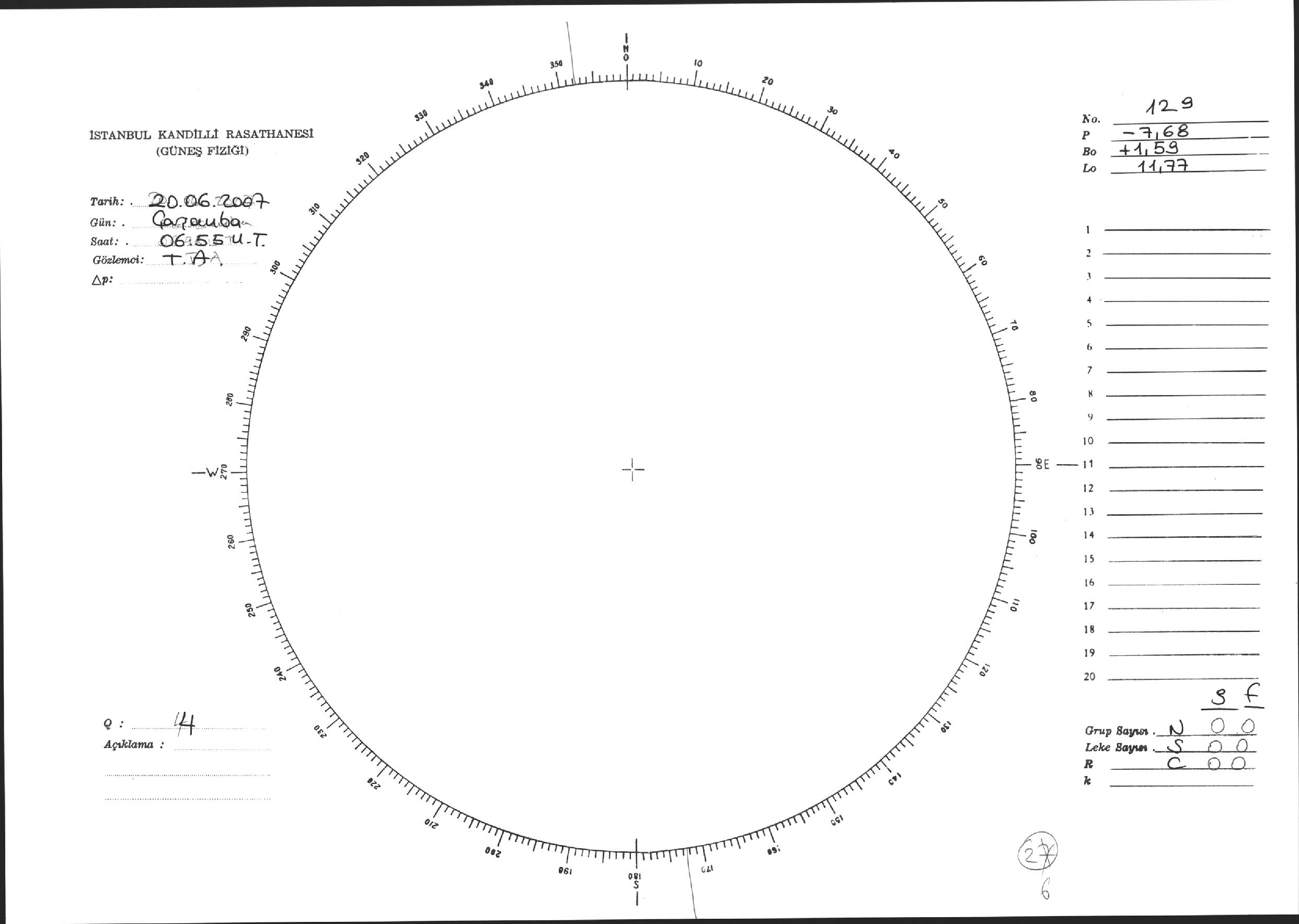 Güneş Lekesi Çizimi - 20.06.2007