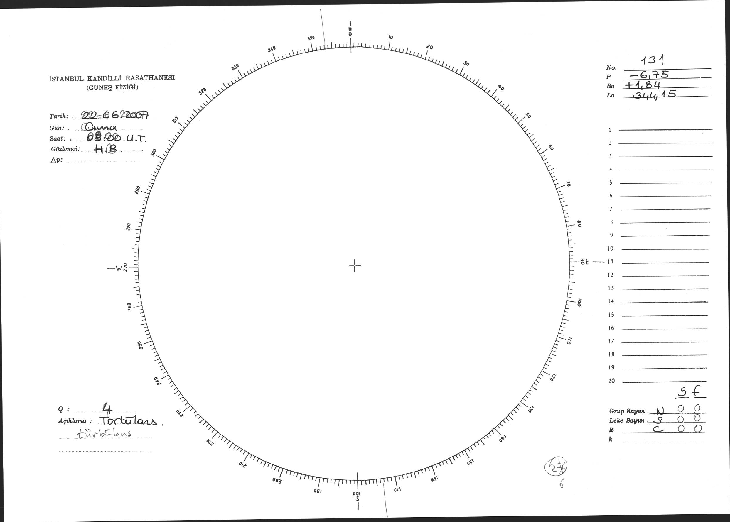 Güneş Lekesi Çizimi - 22.06.2007