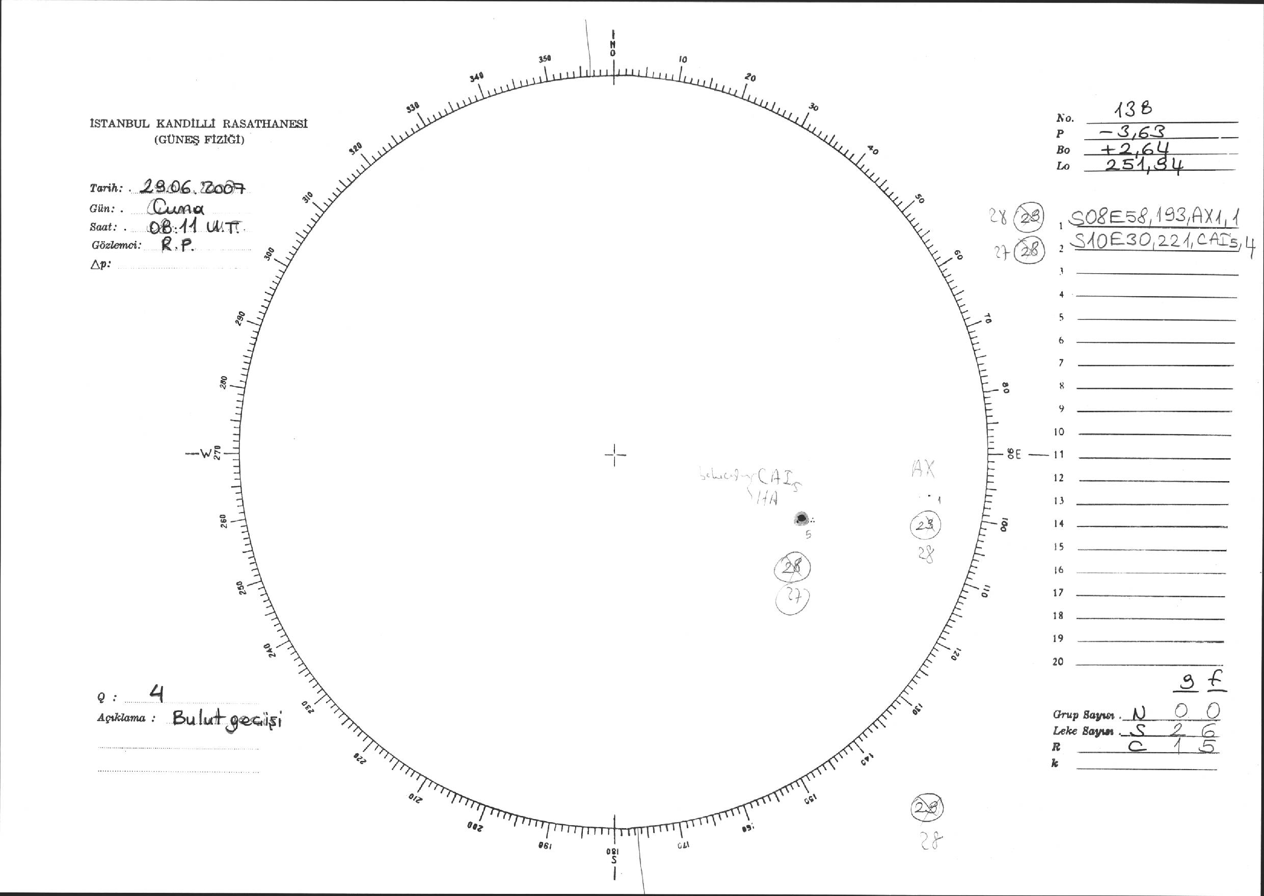 Güneş Lekesi Çizimi - 29.06.2007