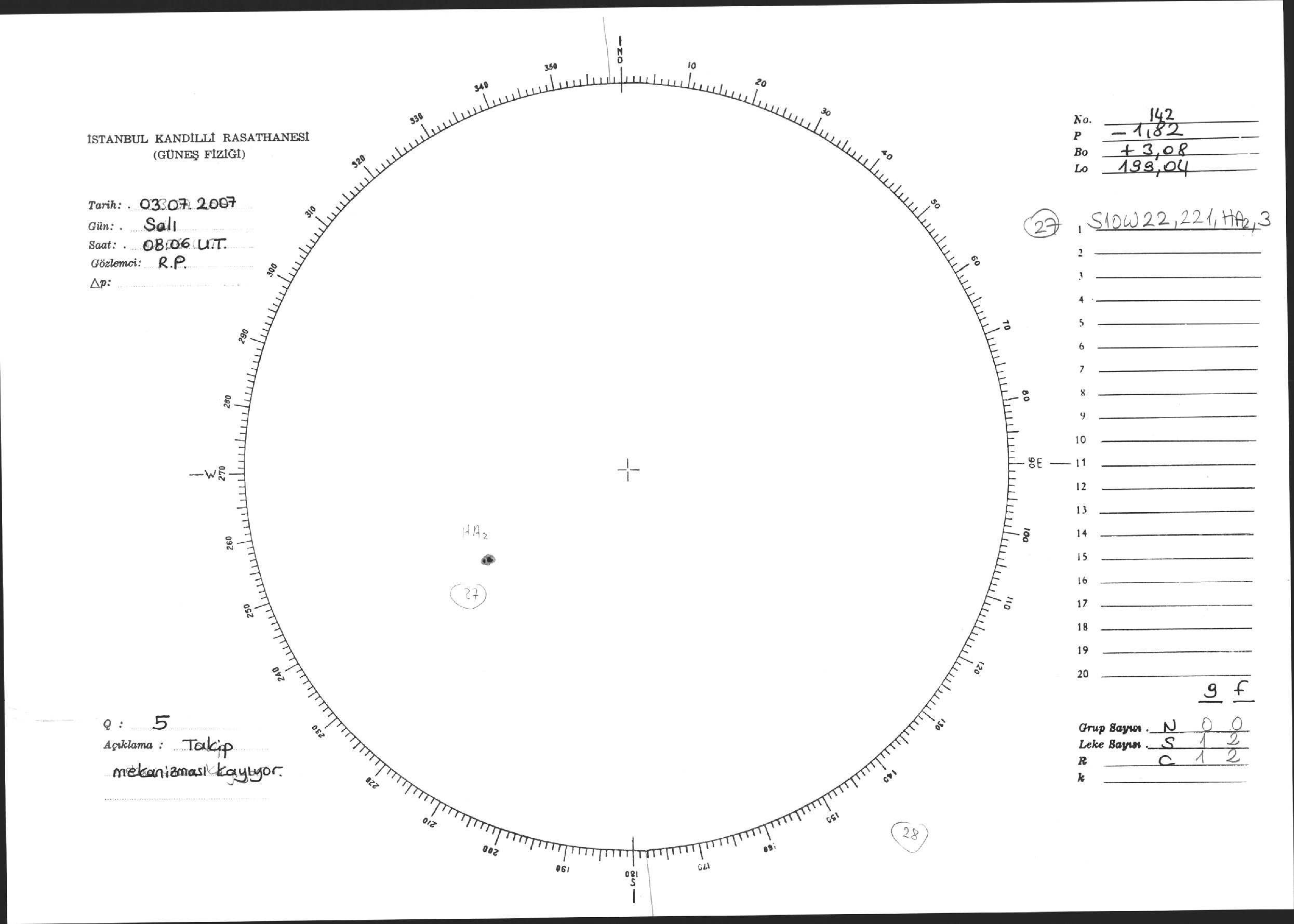 Güneş Lekesi Çizimi - 03.07.2007