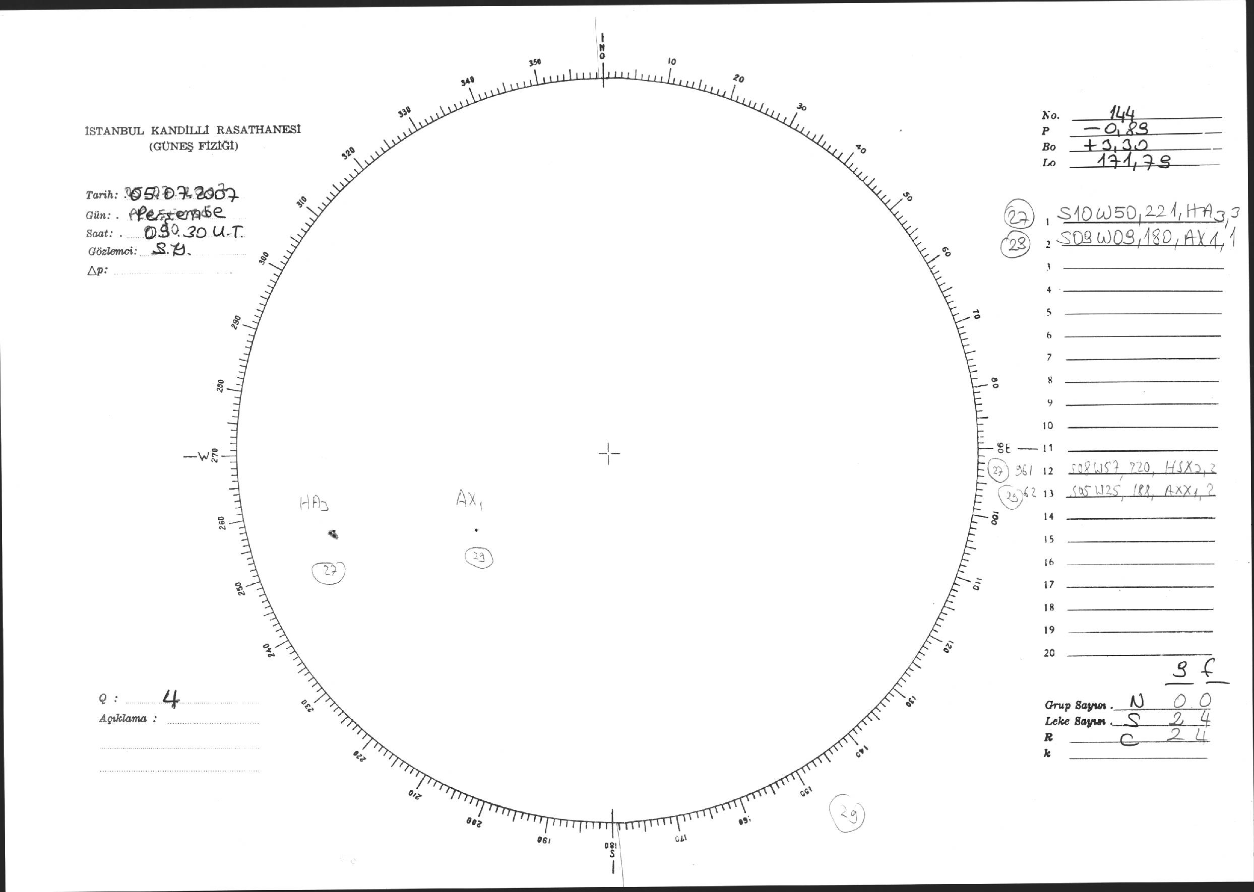 Güneş Lekesi Çizimi - 05.07.2007