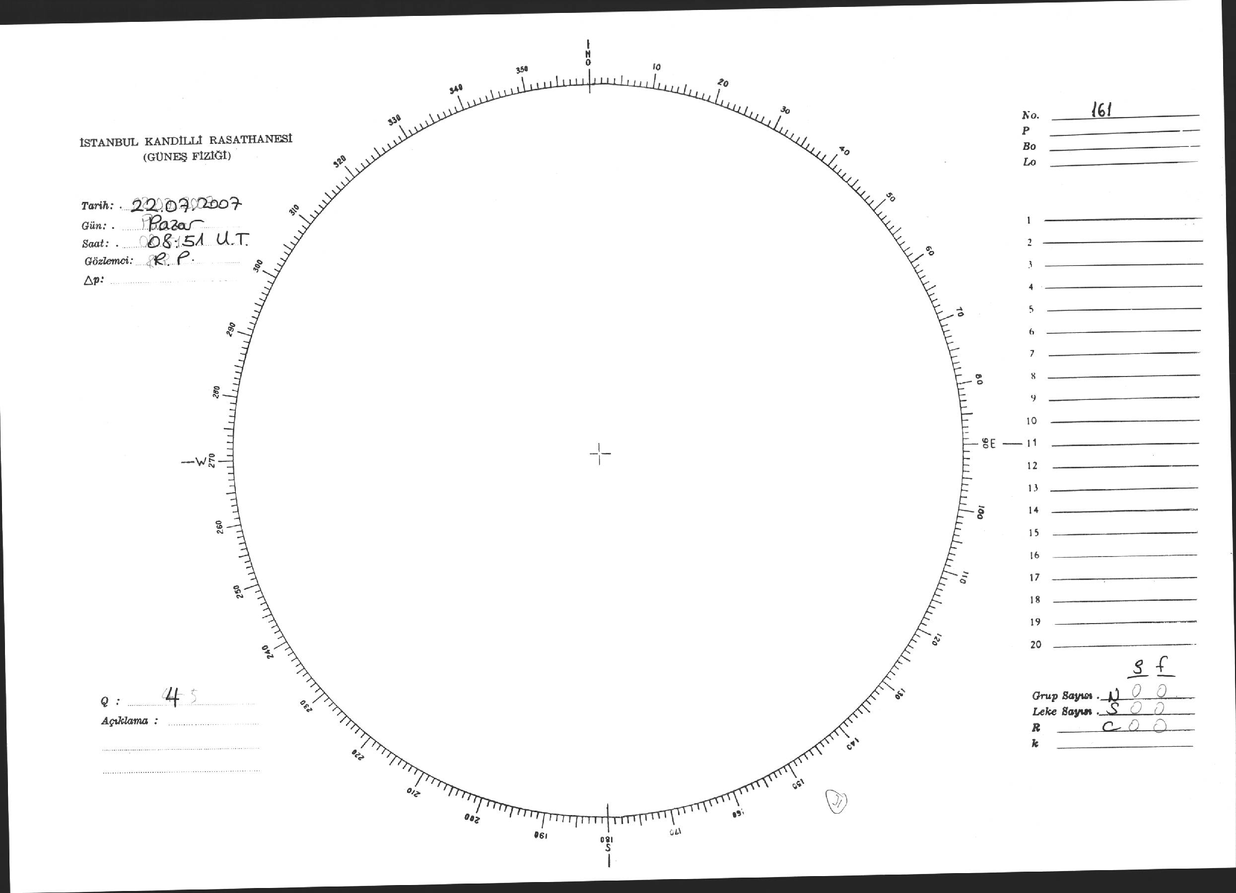 Güneş Lekesi Çizimi - 22.07.2007