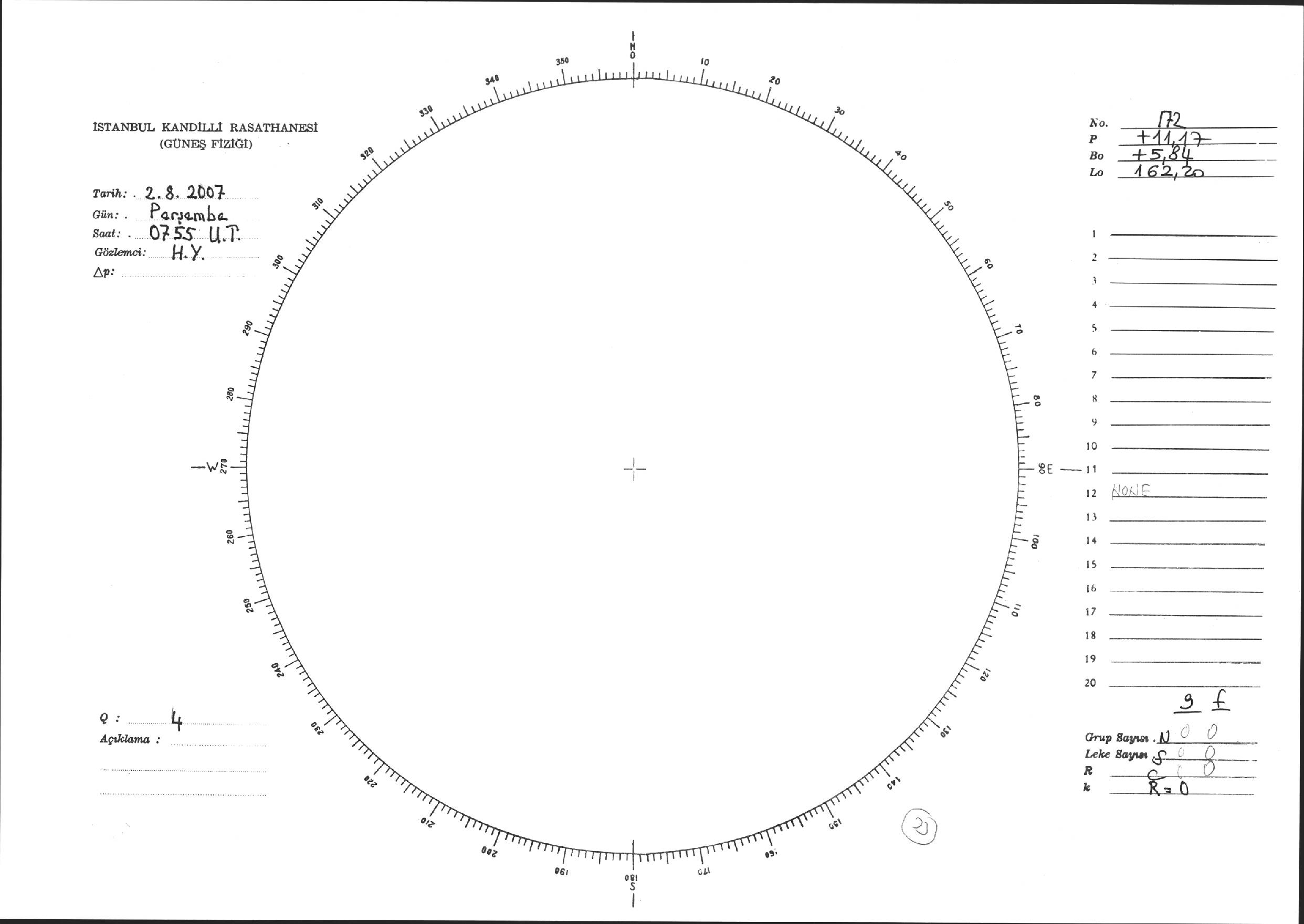 Güneş Lekesi Çizimi - 02.08.2007