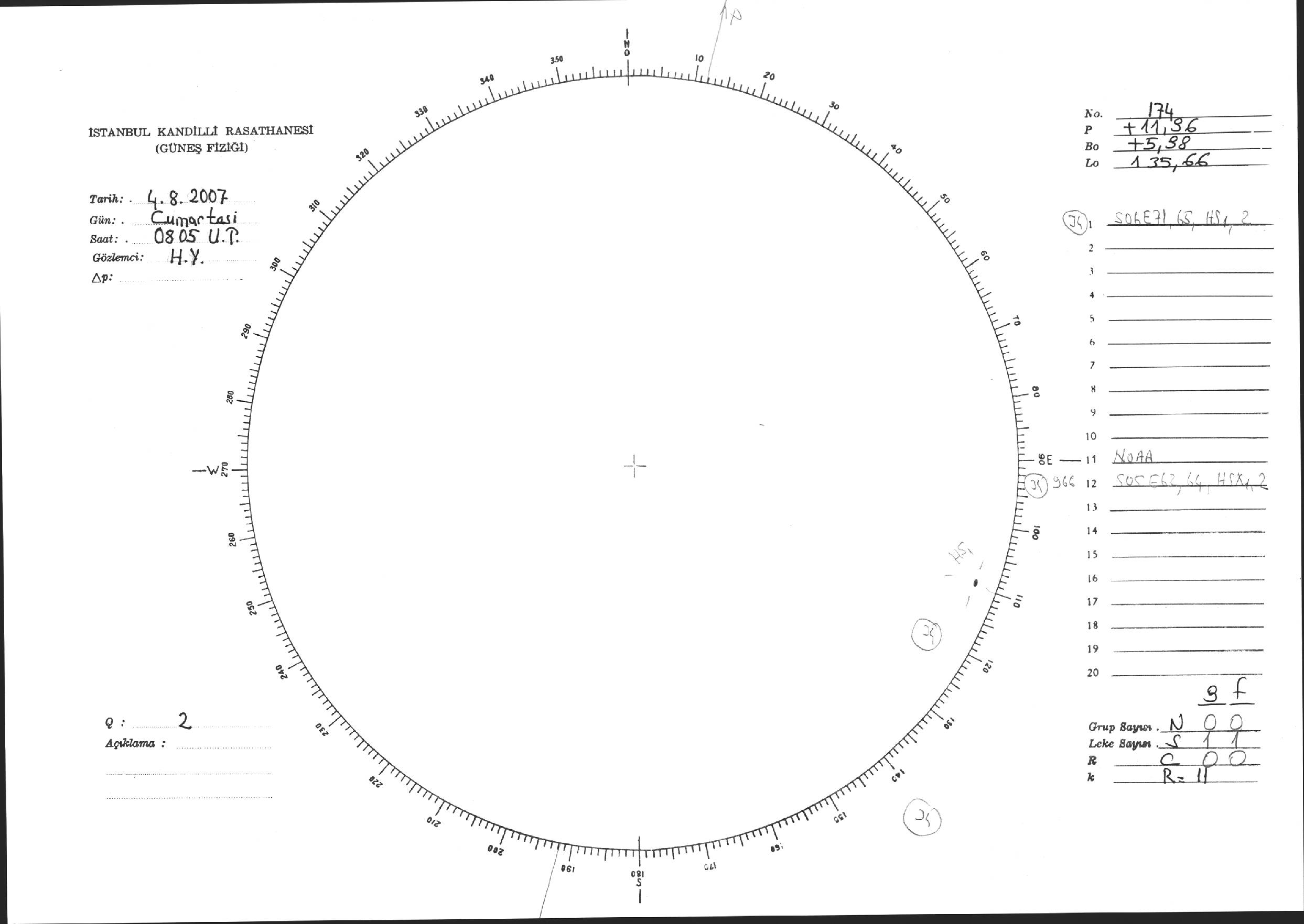 Güneş Lekesi Çizimi - 04.08.2007