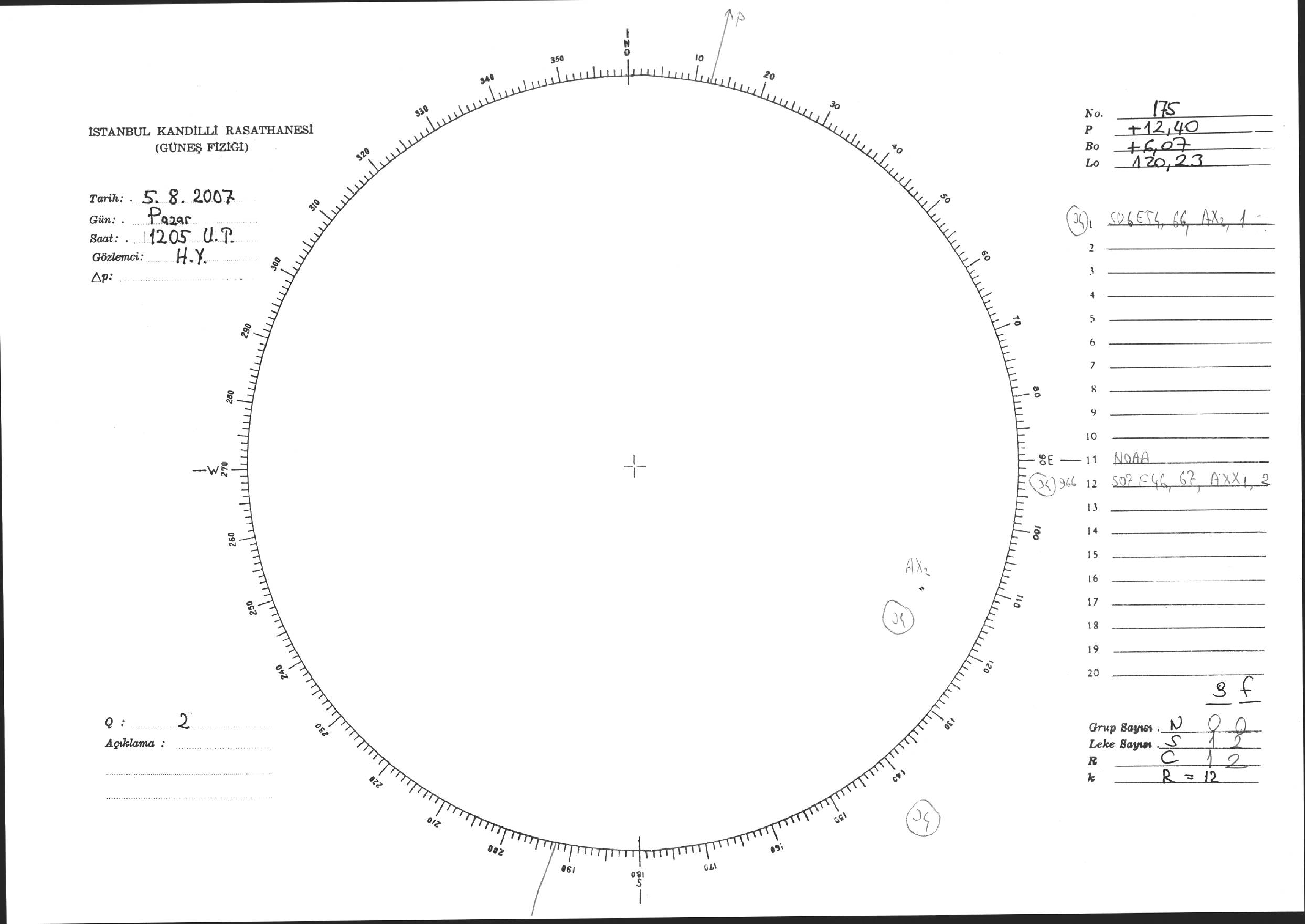 Güneş Lekesi Çizimi - 05.08.2007