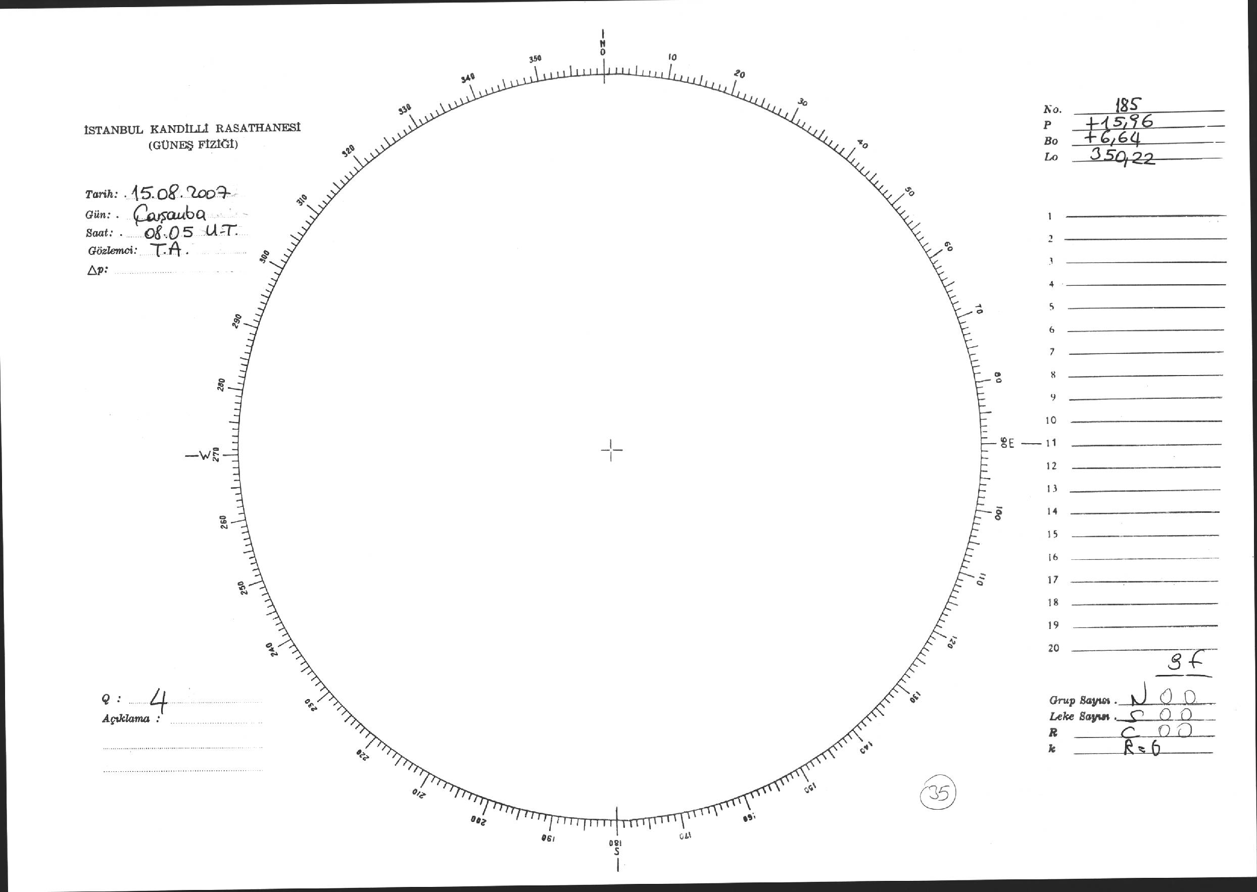 Güneş Lekesi Çizimi - 15.08.2007