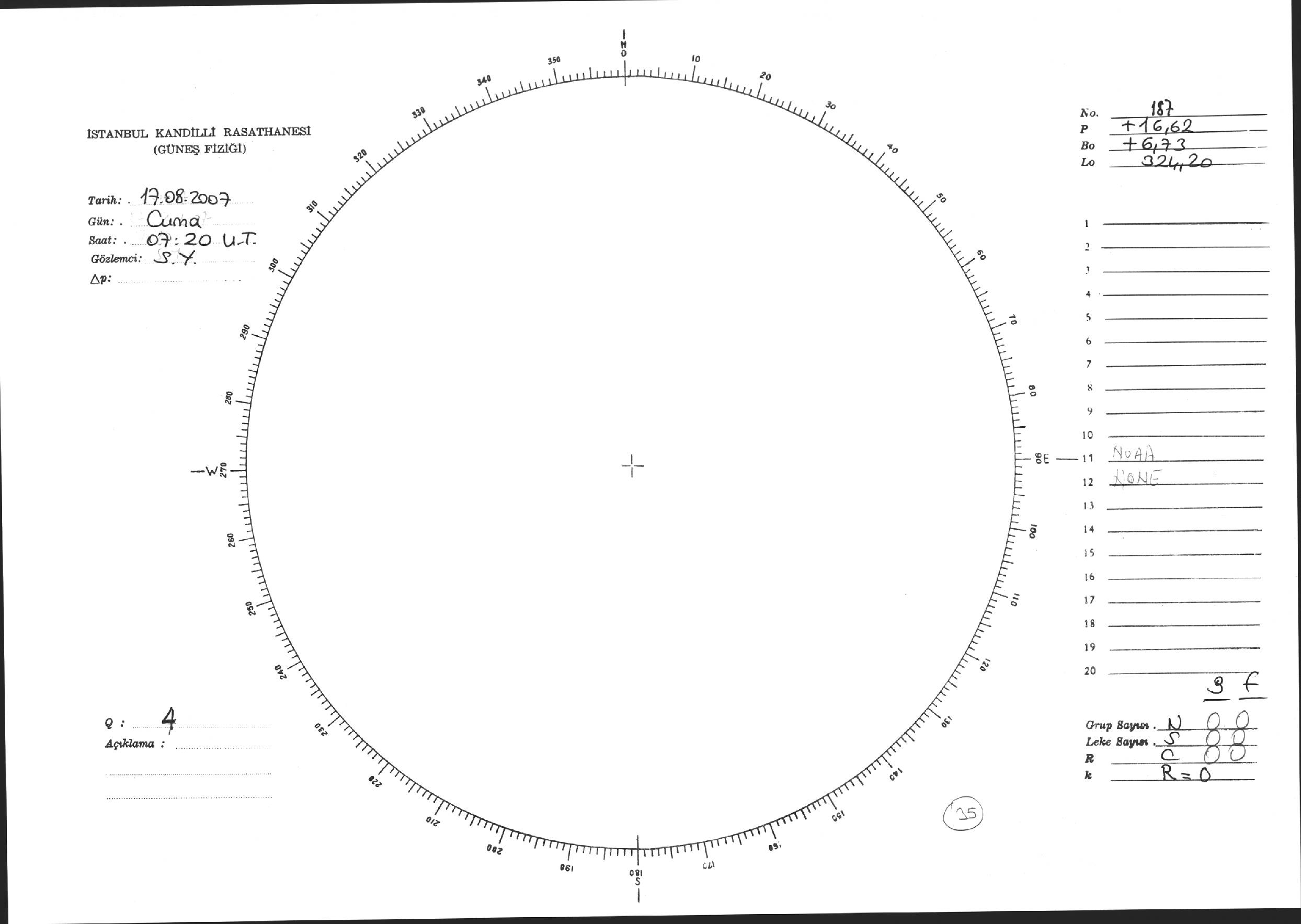 Güneş Lekesi Çizimi - 17.08.2007