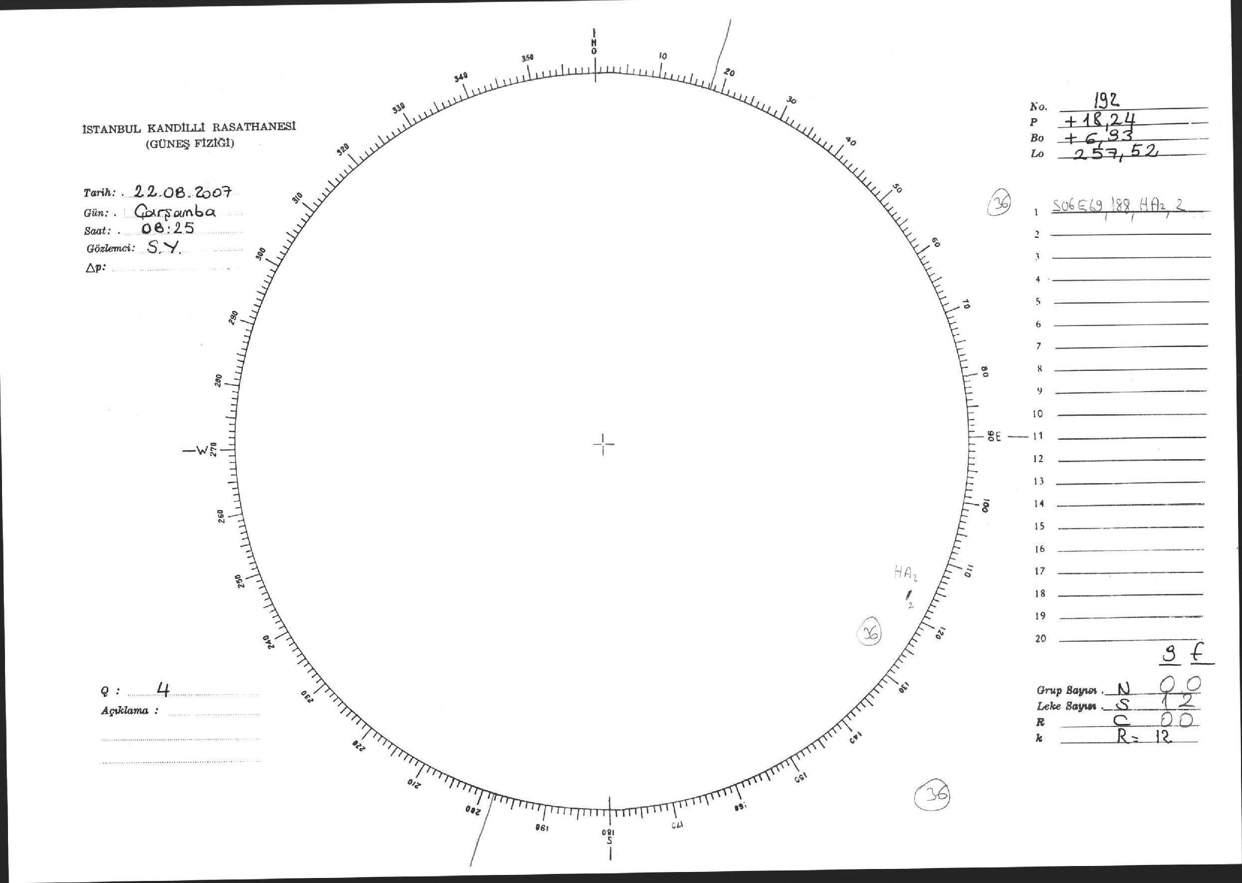 Güneş Lekesi Çizimi - 22.08.2007