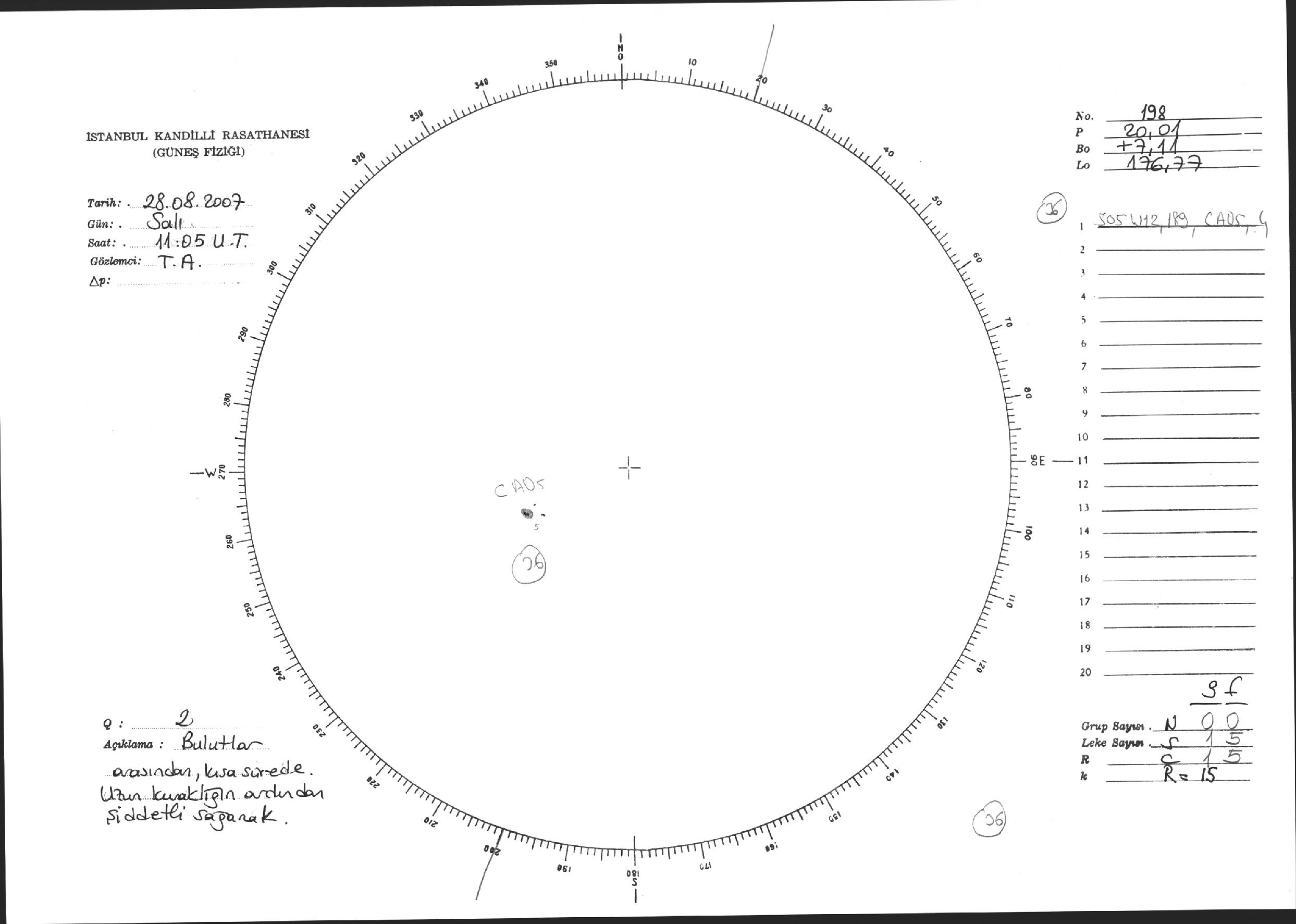 Güneş Lekesi Çizimi - 28.08.2007